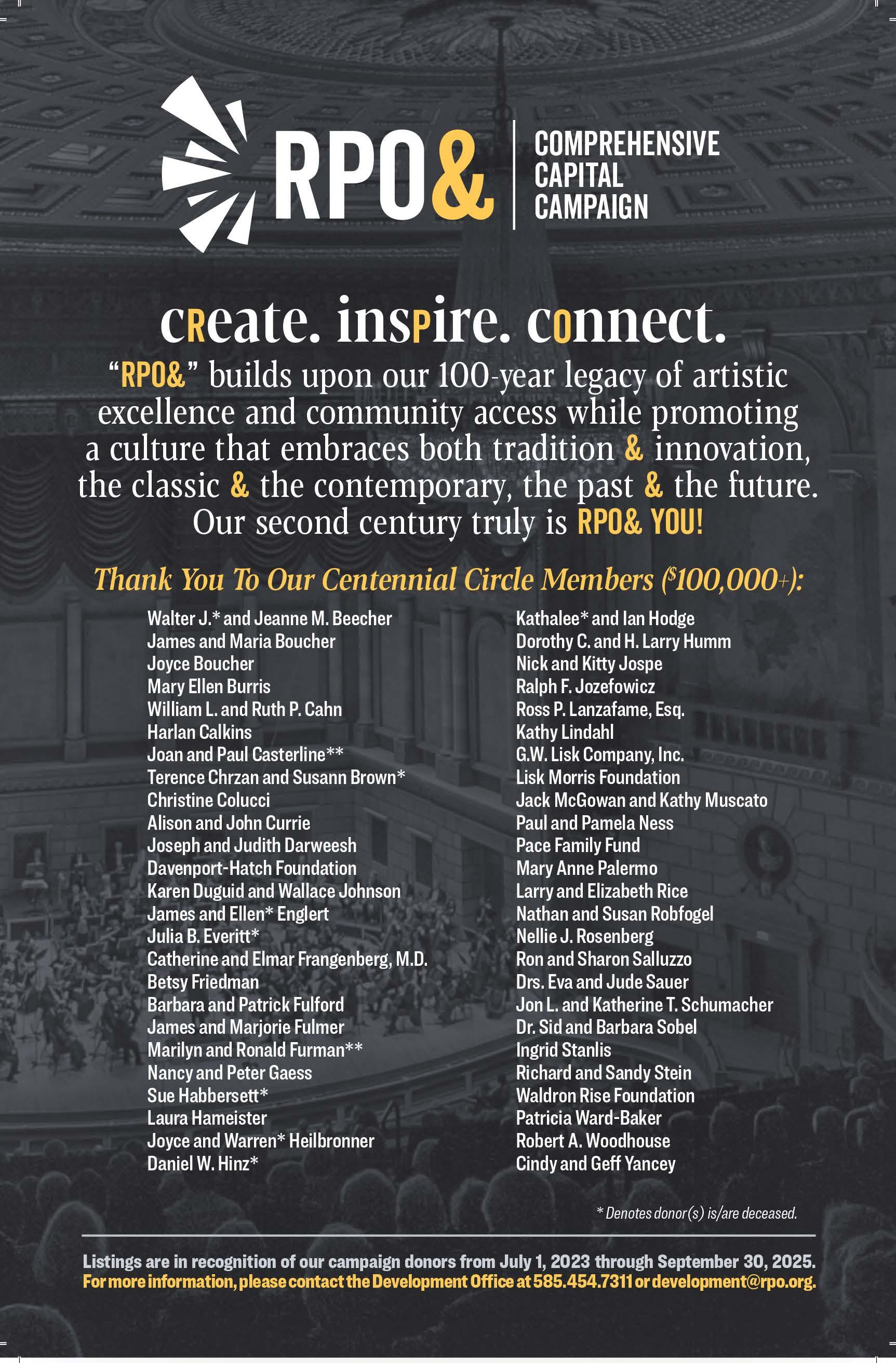 CONNECT WITH US facebook.com/RochesterPhilharmonic @rocphils (Instagram) www.youtube.com/c/RochesterPhilharmonicOrchestra linkedin.com/company/rocphils