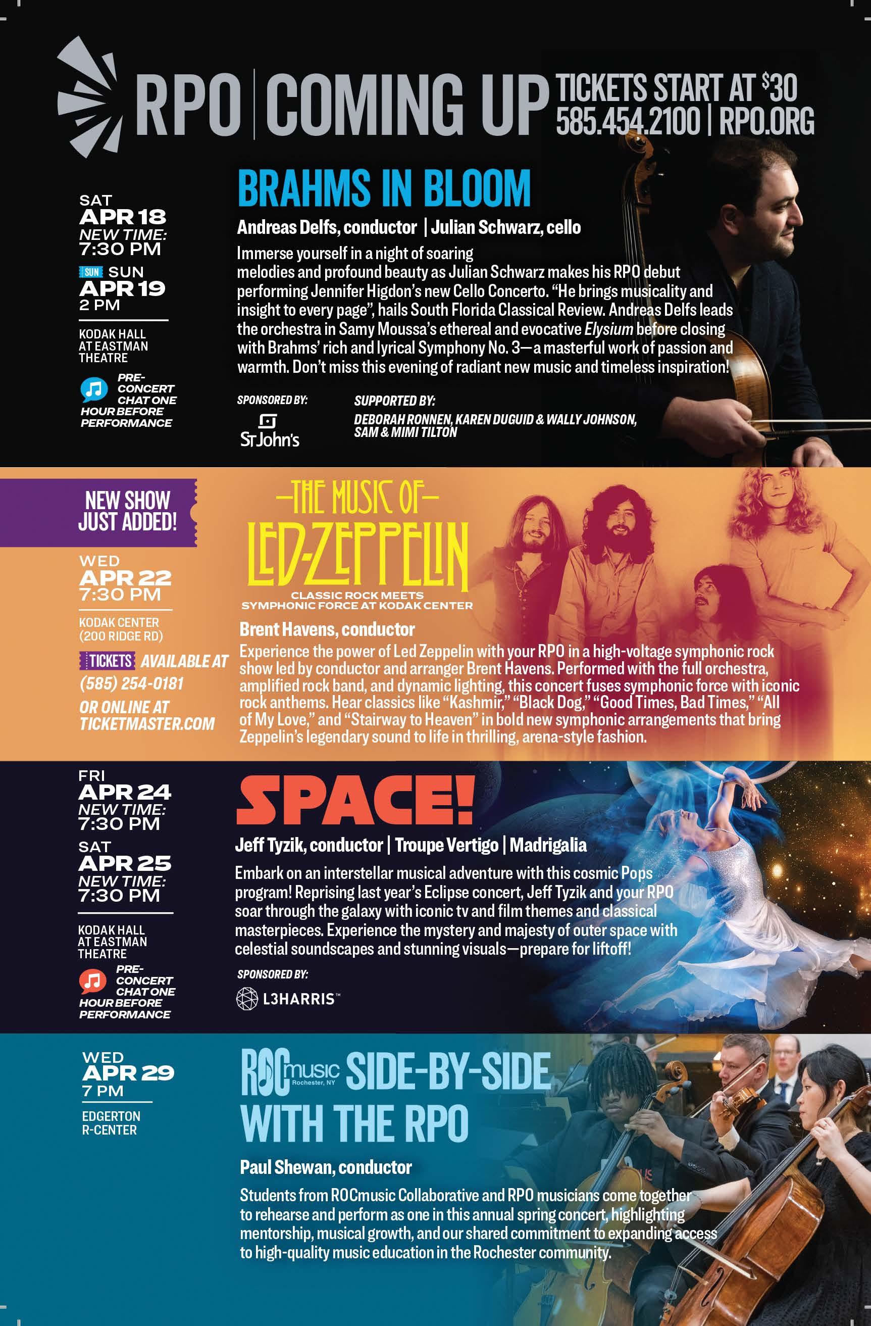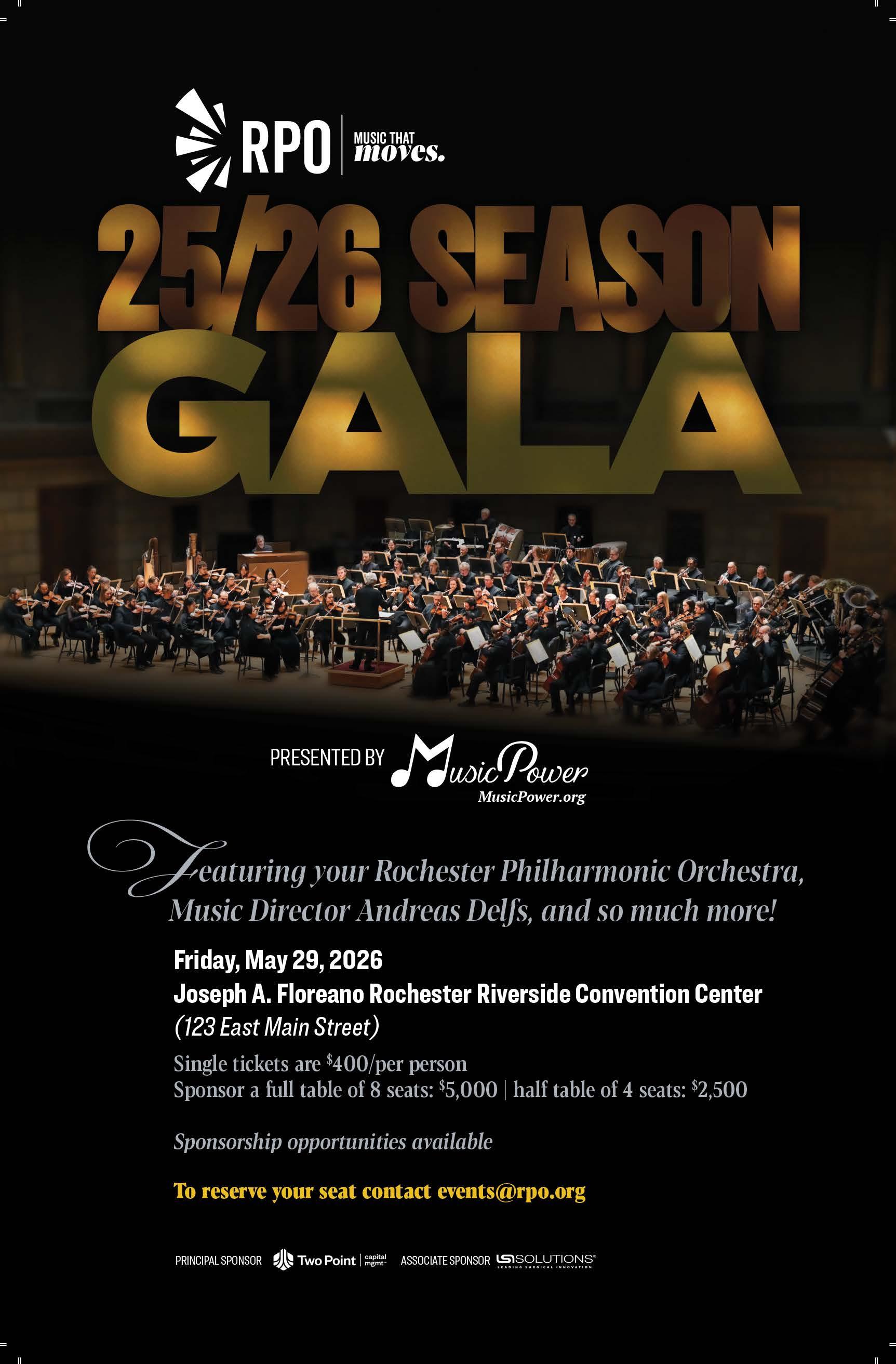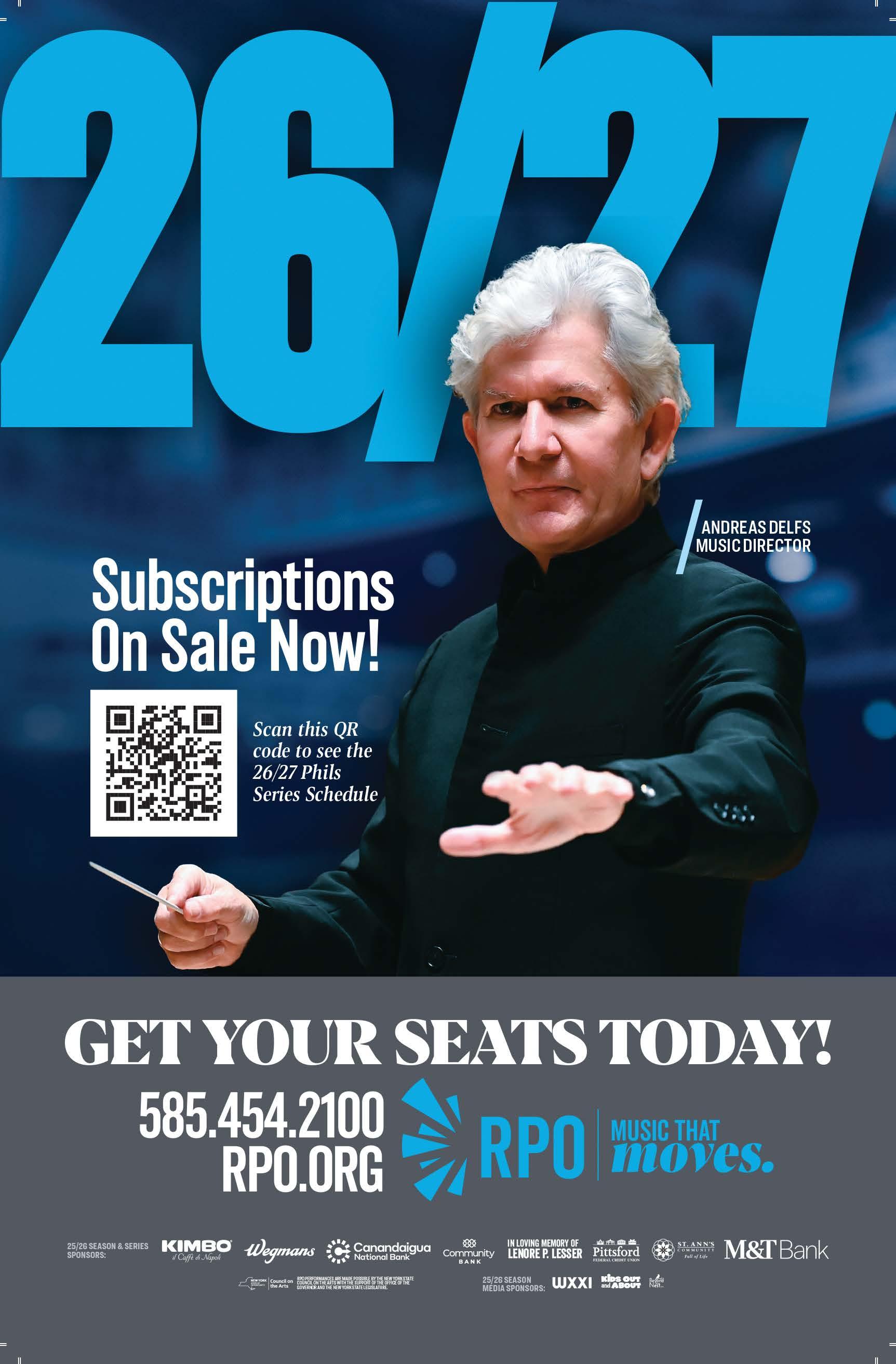 GROUP SALES: Groups of 10 or more are eligible for discounts starting at 20%! Contact Group and Corporate Sales Manager: Sal Uttaro at suttaro@ rpo.org | Office: (585) 454-7311 ext. 267 | Mobile: (585) 530-0865
