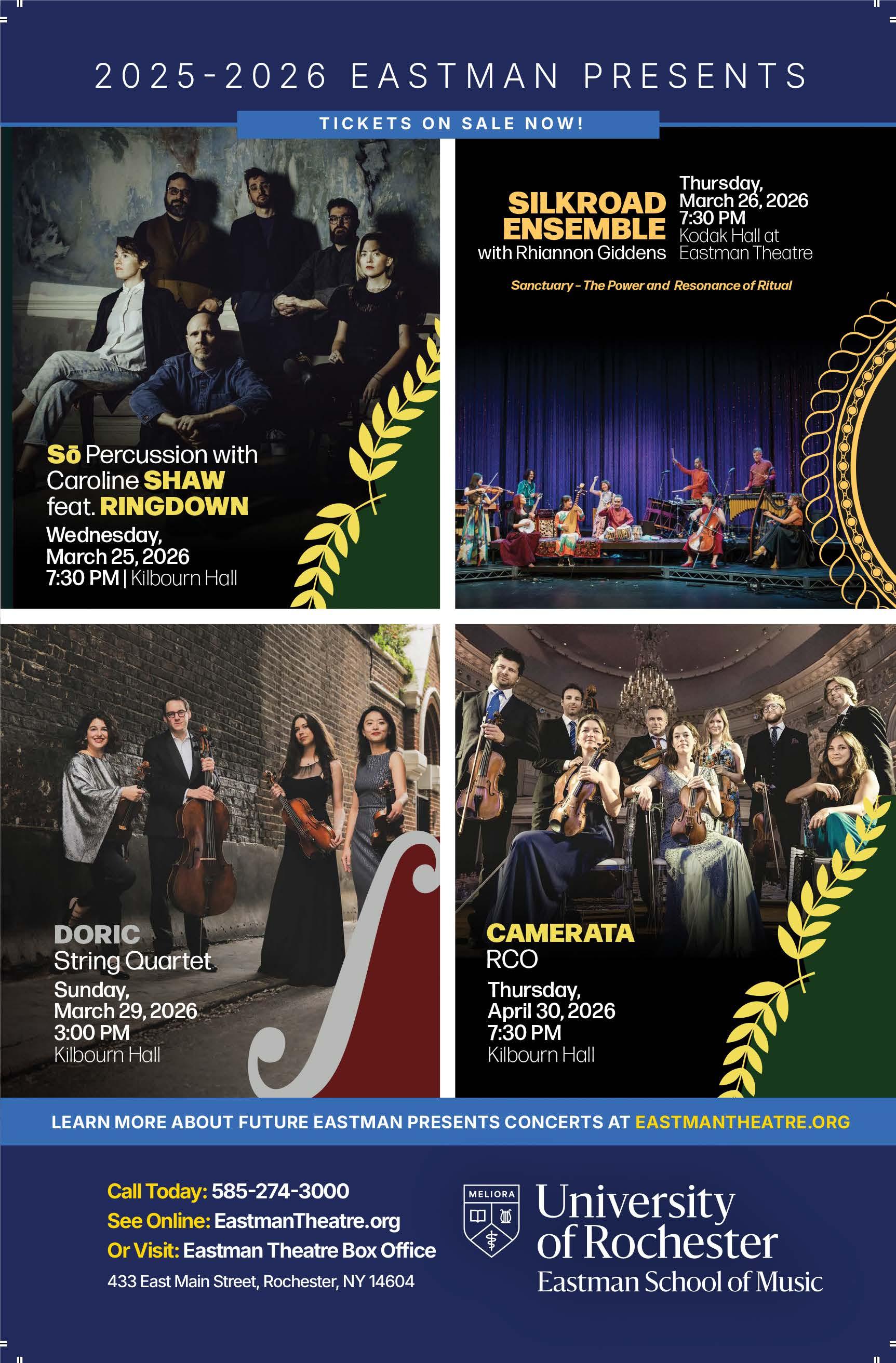 SERVICES FOR HARD-OF-HEARING PATRONS: Audio systems are available at Kodak Hall at Eastman Theatre; headsets may be obtained from an usher prior to the performance.