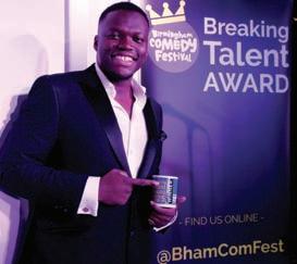 Nowonderhe’slaughing!Sandwell'sRyanSLewishaswon thecovetedBirminghamComedyFestivalBreakingTalent Award.Ryanwaspresentedwithhisawardatapacked GleeClubbyBlackCountrycomedianandbroadcaster DarrenHarriott.Ryanrecognisedthepowerofhumourfrom anearlyage.“WhenIwasfive-years-oldImadeagood friendlaughbyquotingElmo,”herecalled.“Then,atseven, IsawISpywithEddieMurphy.”Ryanmadehisstand-up debutattheHollyBush,inCradleyHeathin2022.
