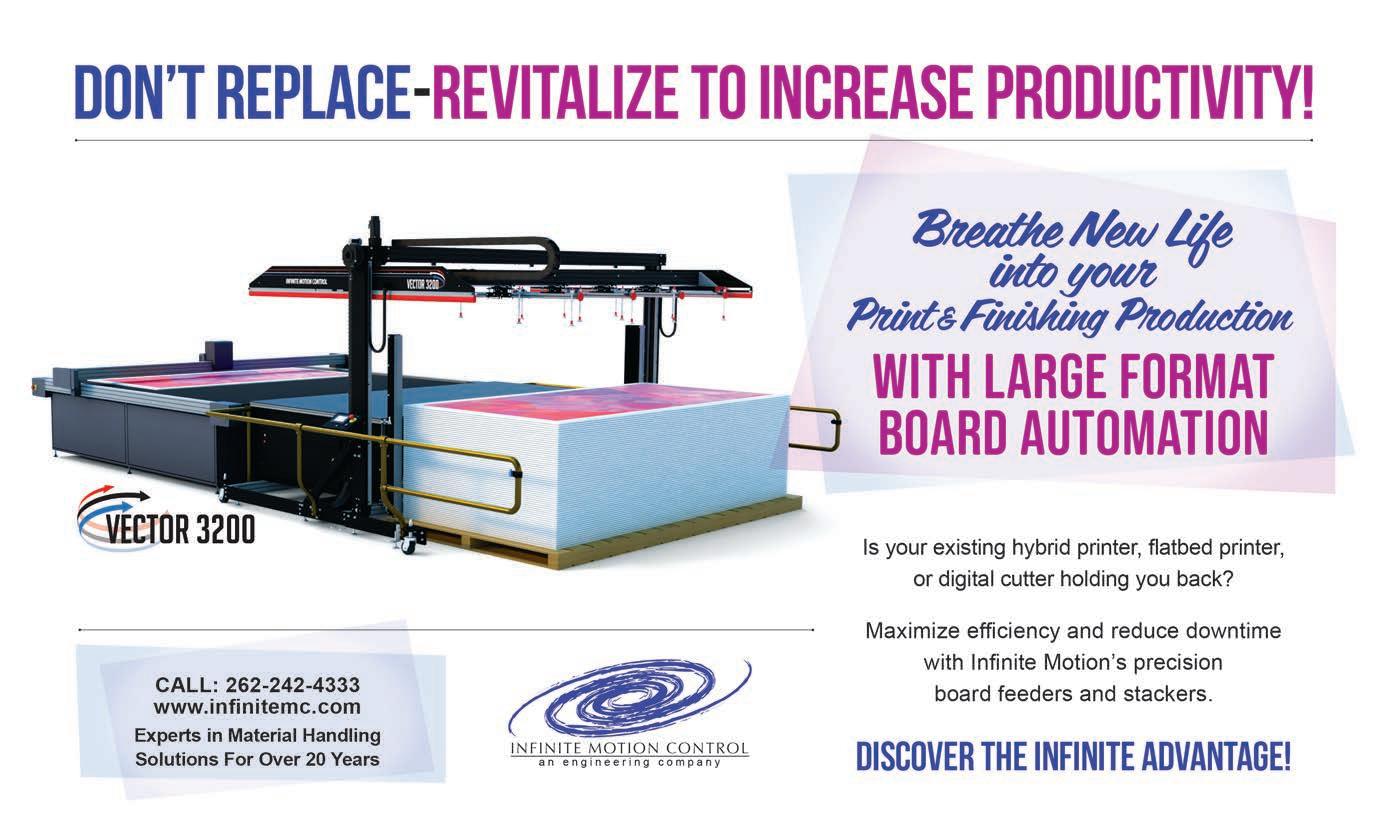 Advancements in ink sets promote use, especially chalkboard specialty material. “We see a resurgence in chalkboard materials as access to white ink becomes more readily available,” says Dennis Leblanc, senior