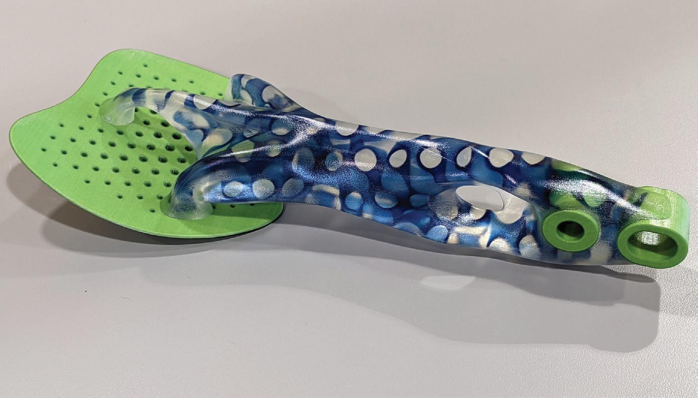 3. A NASCAR brake pedal model displaying the internal weight-reducing structures of a metal 3D print created with a Mimaki printer. Part courtesy of Hass Racing and Autodesk. 4. nScrypt works closely with aerospace and automotive companies to support the development and production of next-generation electronic systems for transportation platforms.