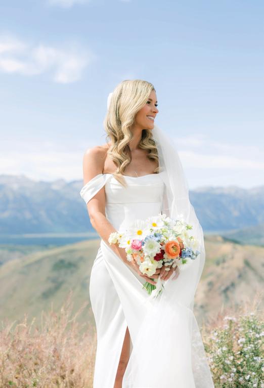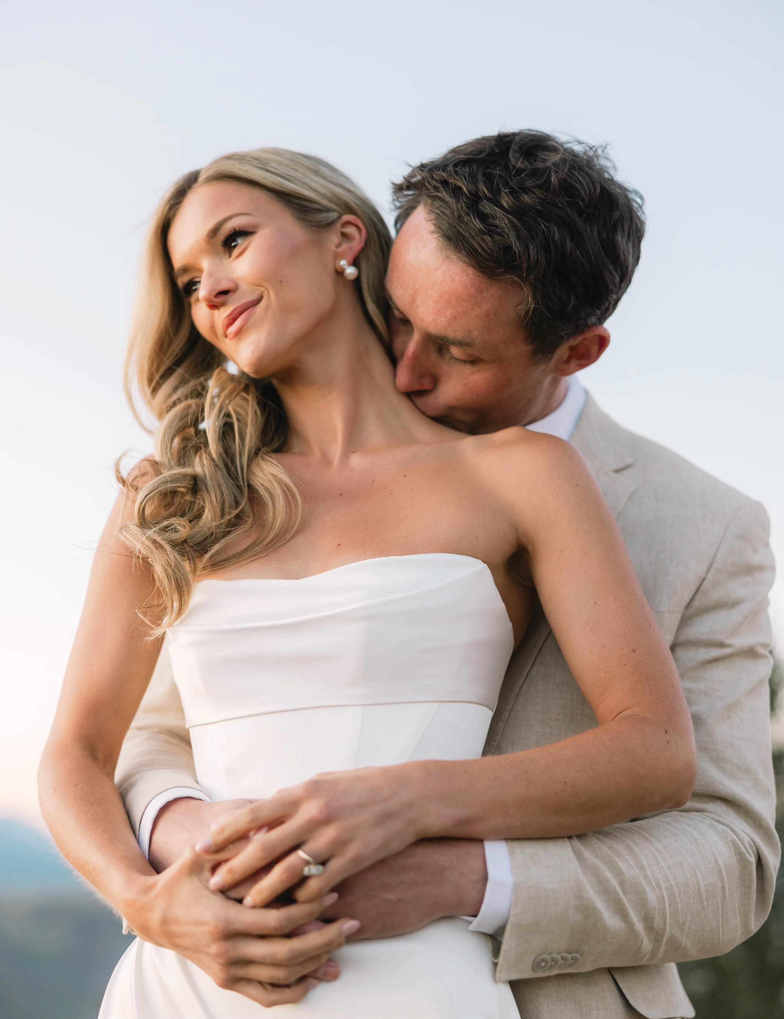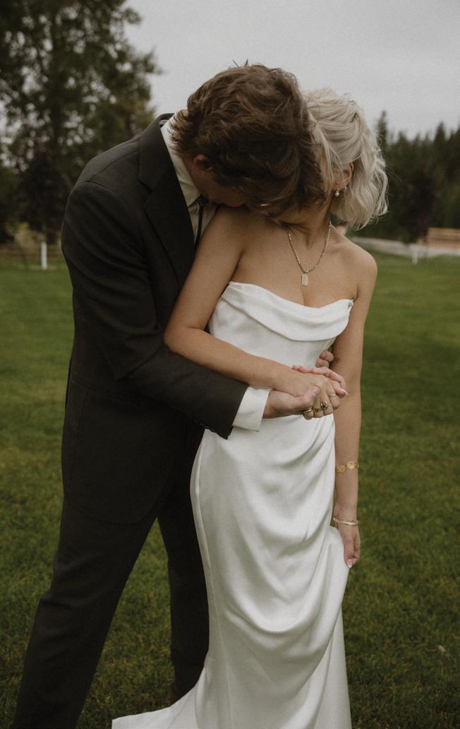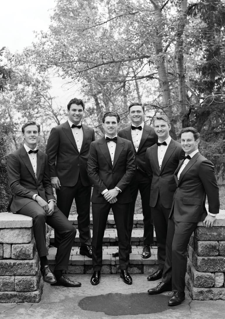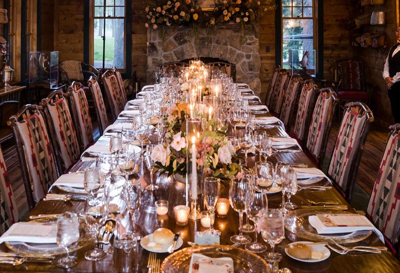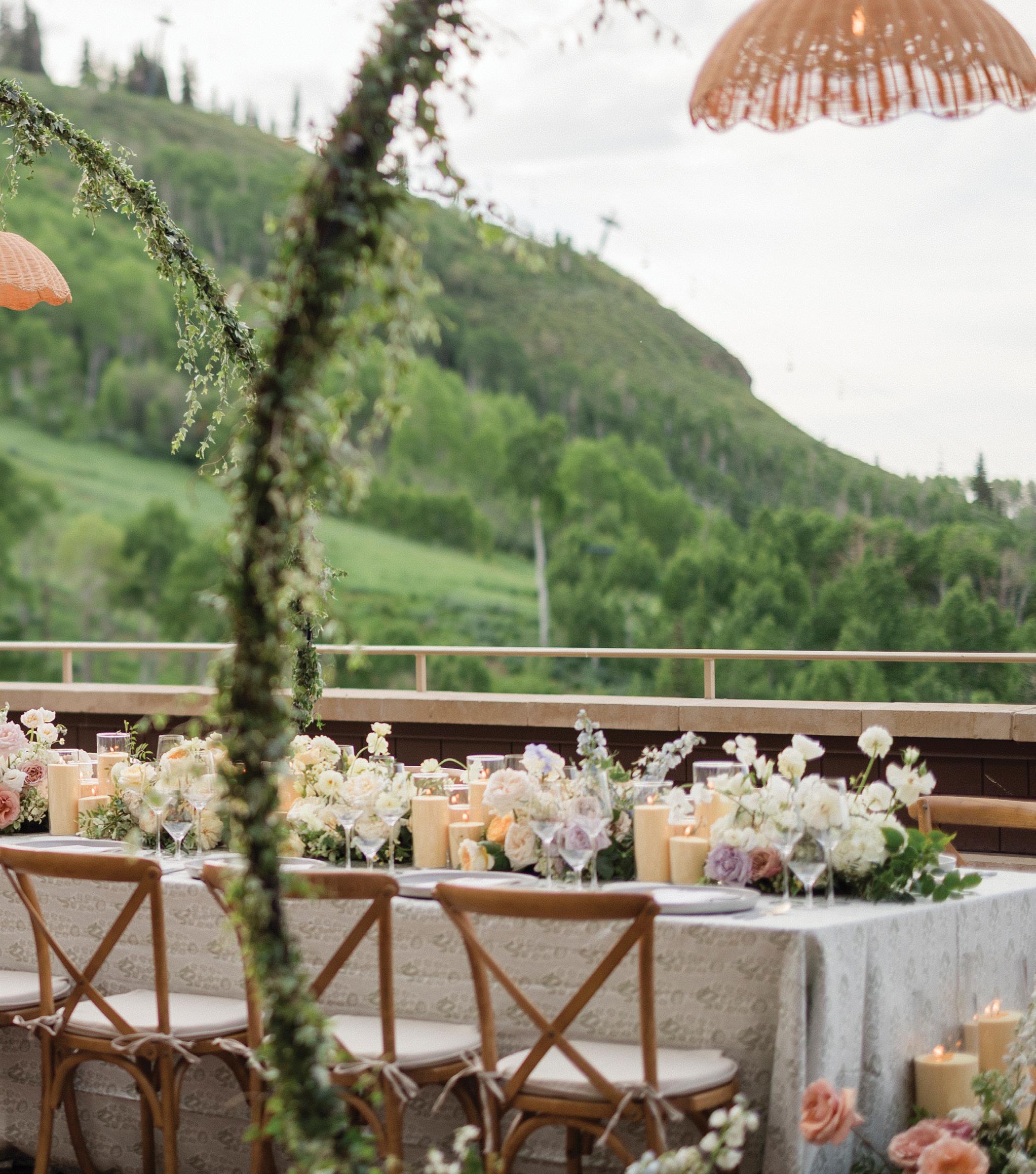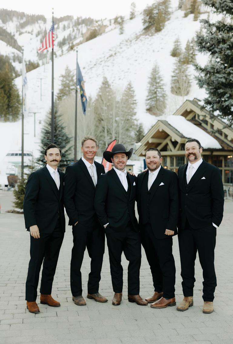 Makenzie and Alex planned a cozy, cabininspired wedding with Ralph Lauren flair for 90 guests at Beano’s Cabin. Opting not to do a first look, Alex first saw his bride in a stunning Dana Harel gown as she walked down the aisle toward the sweeping peaks of the Rockies, her cathedrallength veil drifting in the wind. For the reception, pops of yellow wildflowers and the glow of candlelight accented the tables, adding to the intimate, familydinner atmosphere that ended up being the couple’s favorite part of the day.. Looking back, Makenzie shared, “Once the dance floor opened, it never stopped; friends on shoulders, spins straight out of Blades of Glory and even a few ripped suit pants. We felt endlessly celebrated and so loved.”