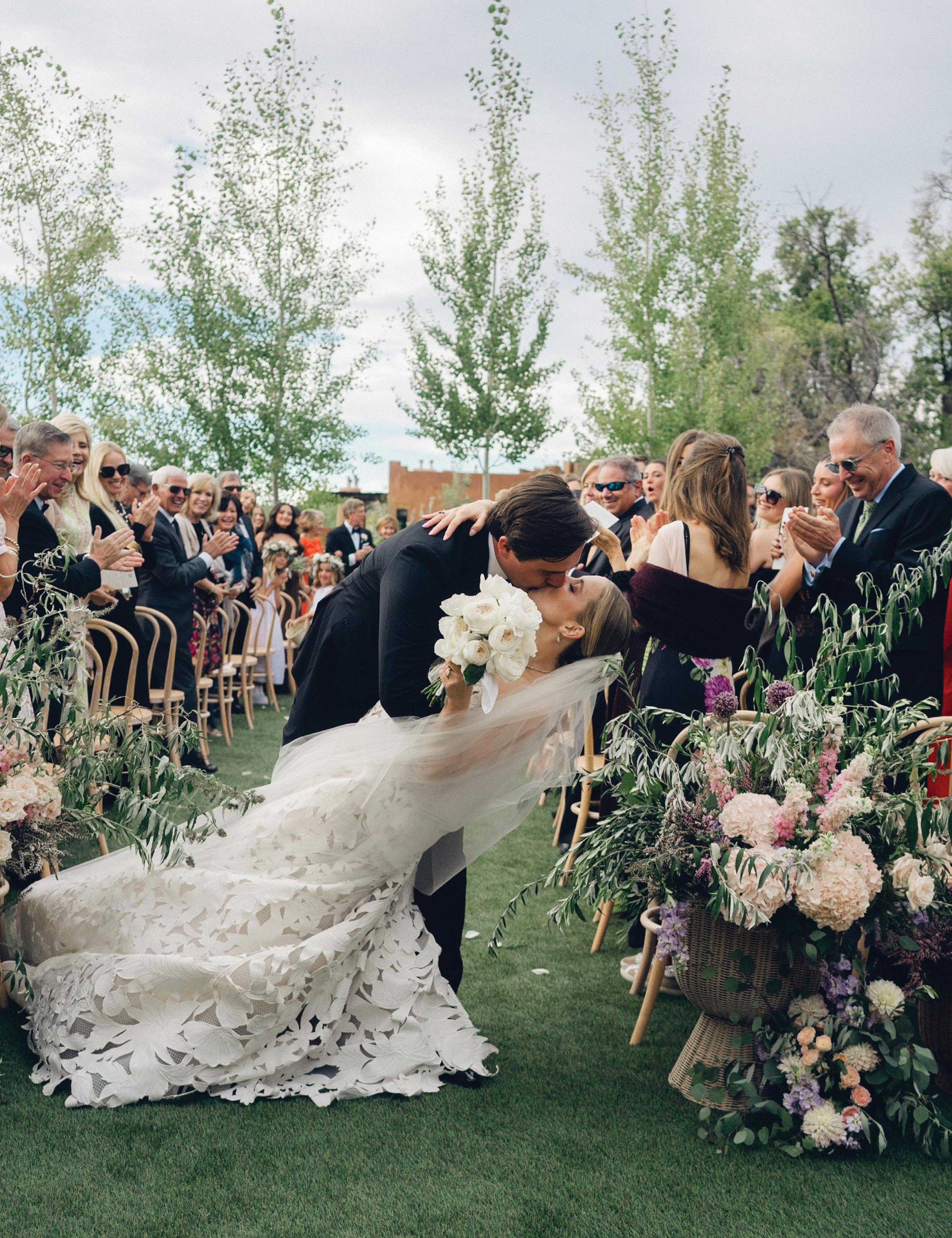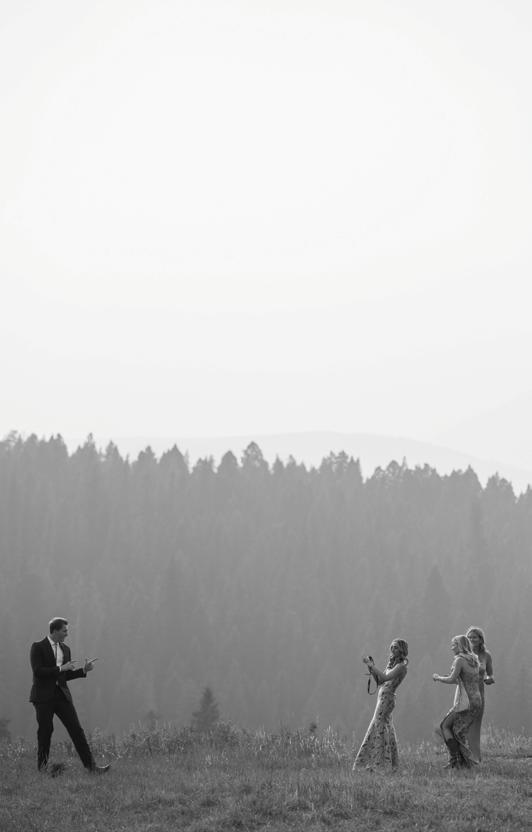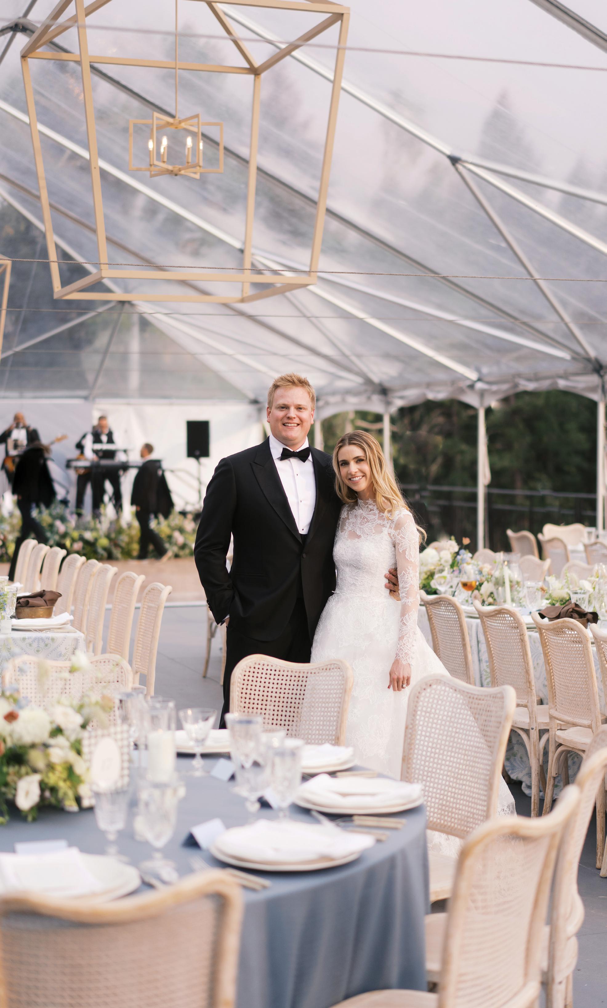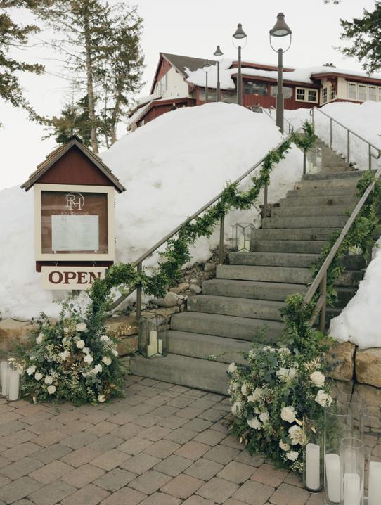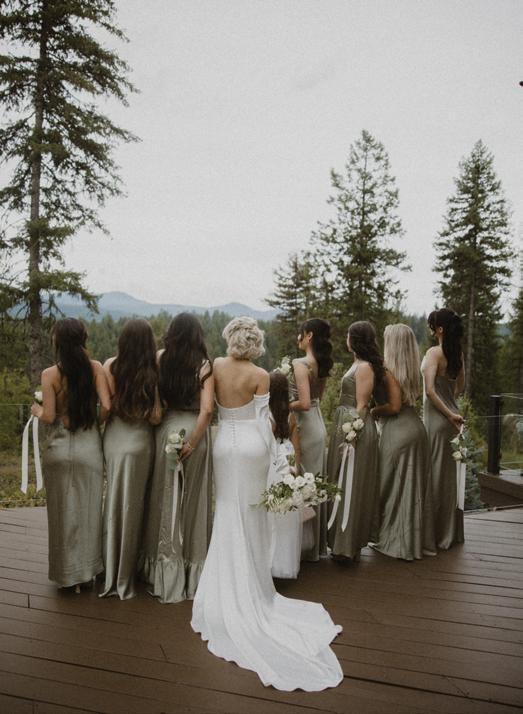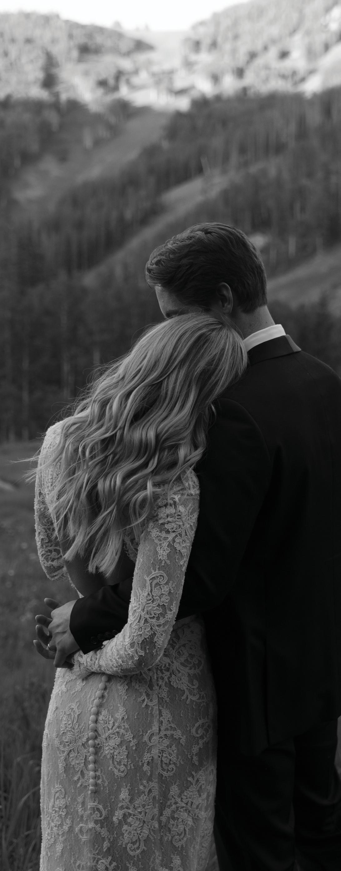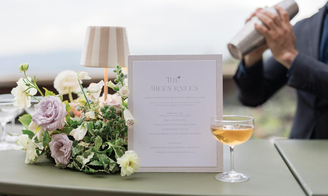 Makenzie and Alex planned a cozy, cabininspired wedding with Ralph Lauren flair for 90 guests at Beano’s Cabin. Opting not to do a first look, Alex first saw his bride in a stunning Dana Harel gown as she walked down the aisle toward the sweeping peaks of the Rockies, her cathedrallength veil drifting in the wind. For the reception, pops of yellow wildflowers and the glow of candlelight accented the tables, adding to the intimate, familydinner atmosphere that ended up being the couple’s favorite part of the day.. Looking back, Makenzie shared, “Once the dance floor opened, it never stopped; friends on shoulders, spins straight out of Blades of Glory and even a few ripped suit pants. We felt endlessly celebrated and so loved.”