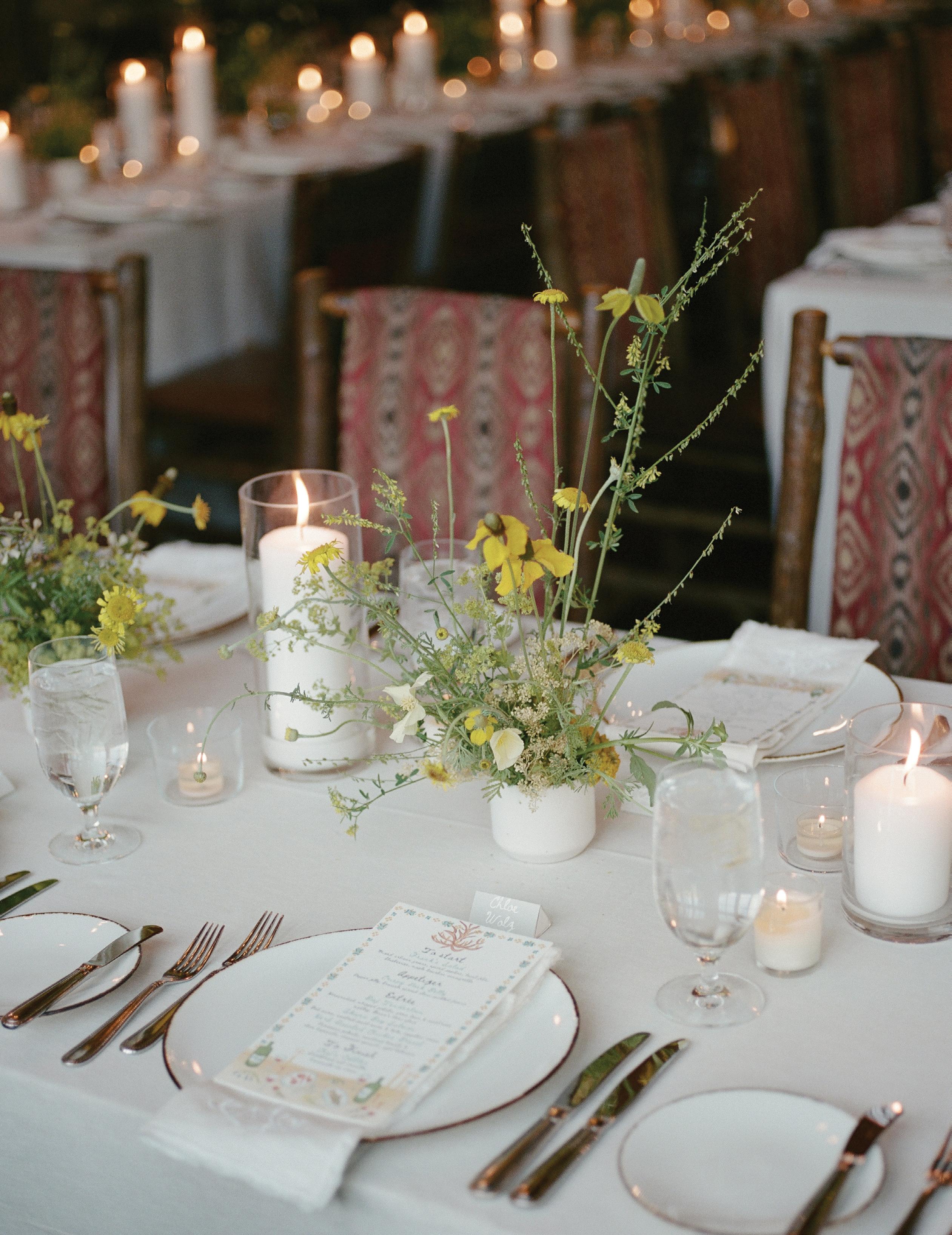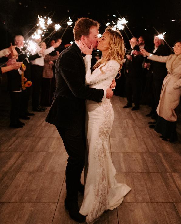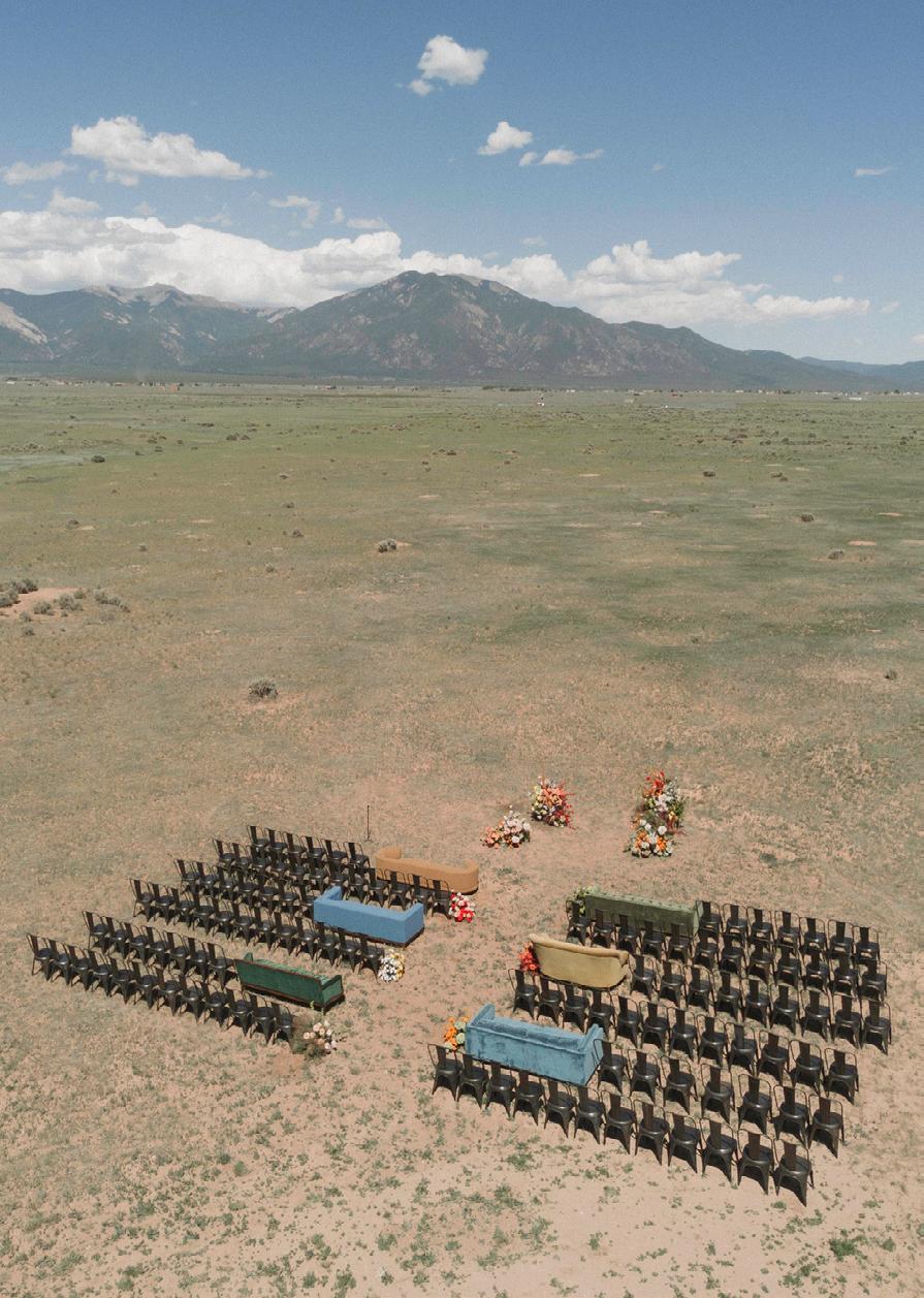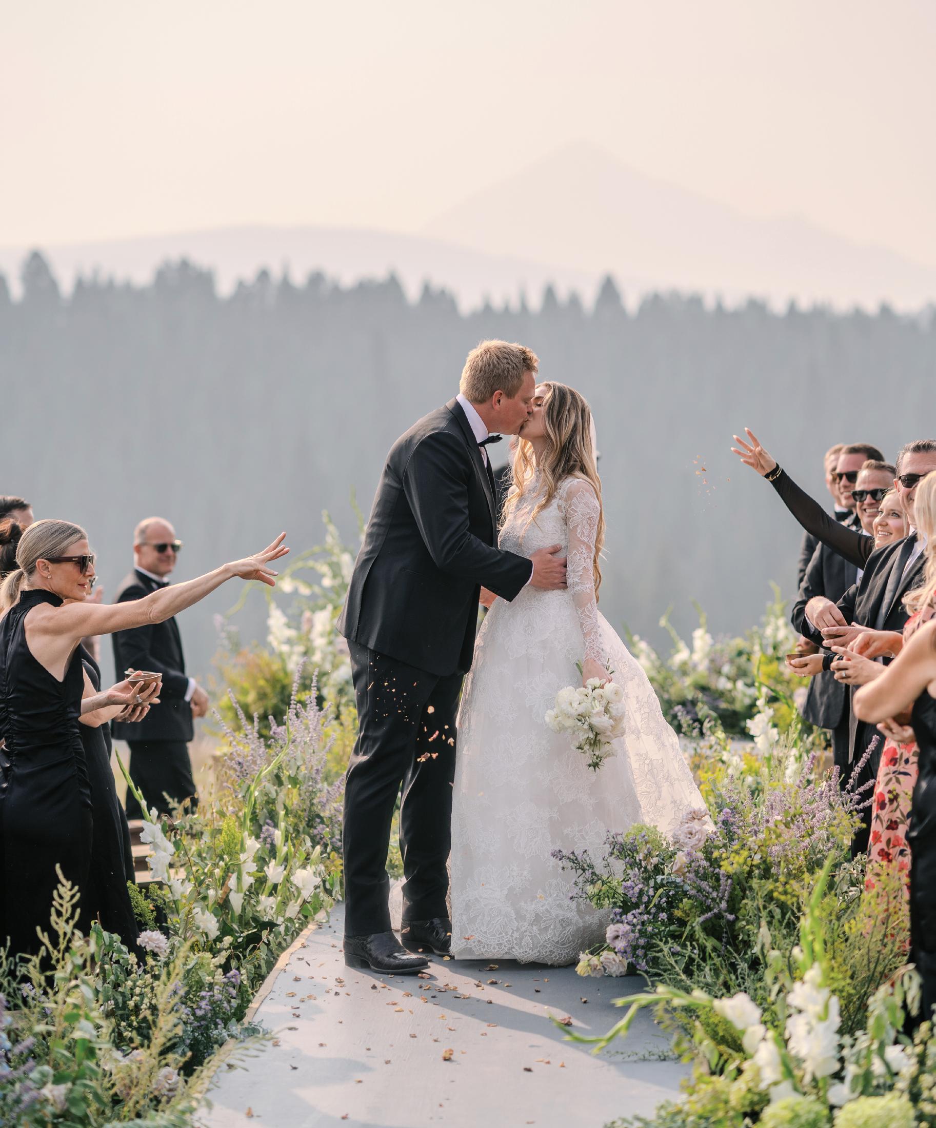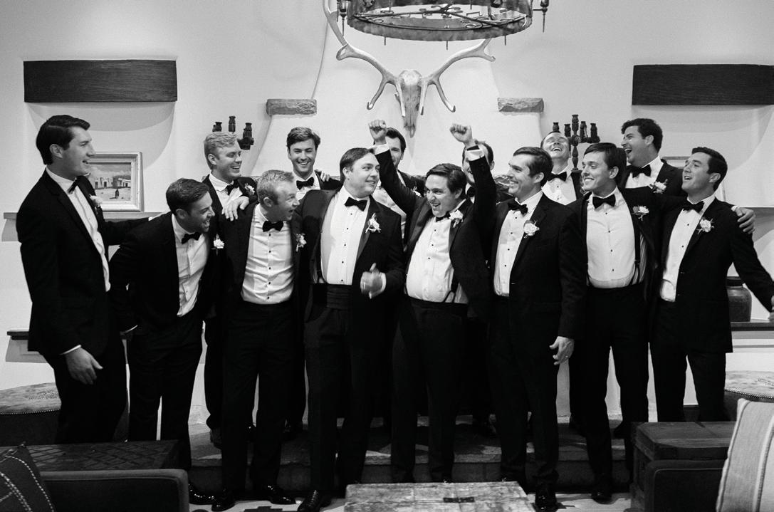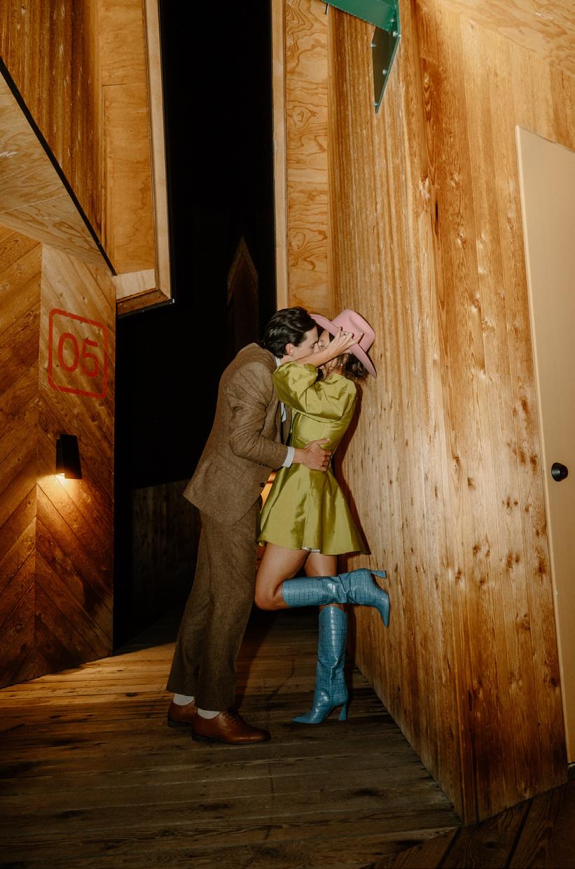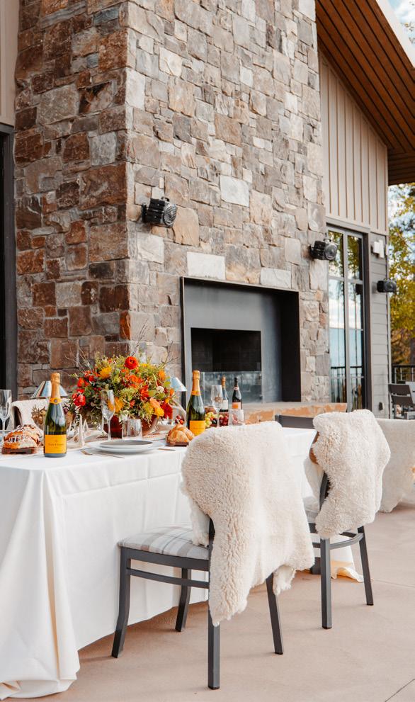 Makenzie and Alex planned a cozy, cabininspired wedding with Ralph Lauren flair for 90 guests at Beano’s Cabin. Opting not to do a first look, Alex first saw his bride in a stunning Dana Harel gown as she walked down the aisle toward the sweeping peaks of the Rockies, her cathedrallength veil drifting in the wind. For the reception, pops of yellow wildflowers and the glow of candlelight accented the tables, adding to the intimate, familydinner atmosphere that ended up being the couple’s favorite part of the day.. Looking back, Makenzie shared, “Once the dance floor opened, it never stopped; friends on shoulders, spins straight out of Blades of Glory and even a few ripped suit pants. We felt endlessly celebrated and so loved.”