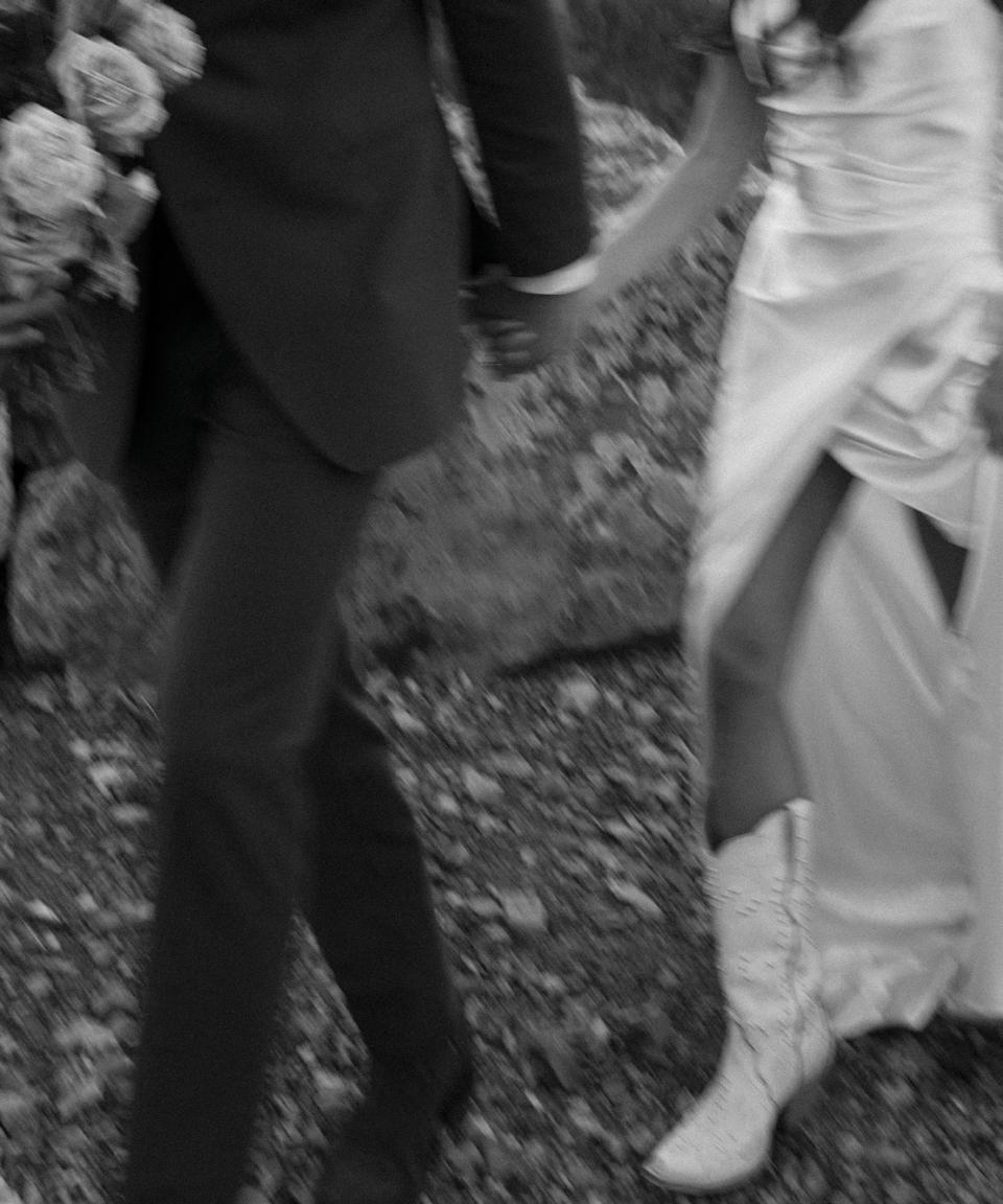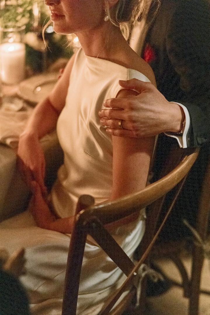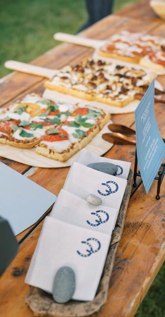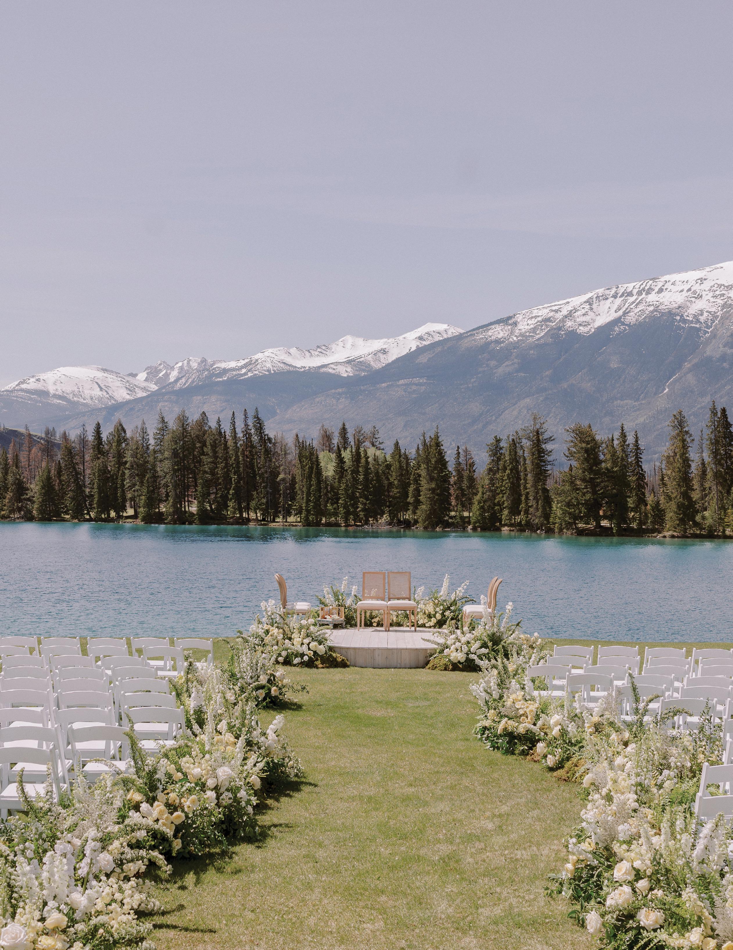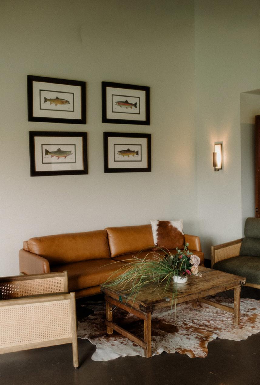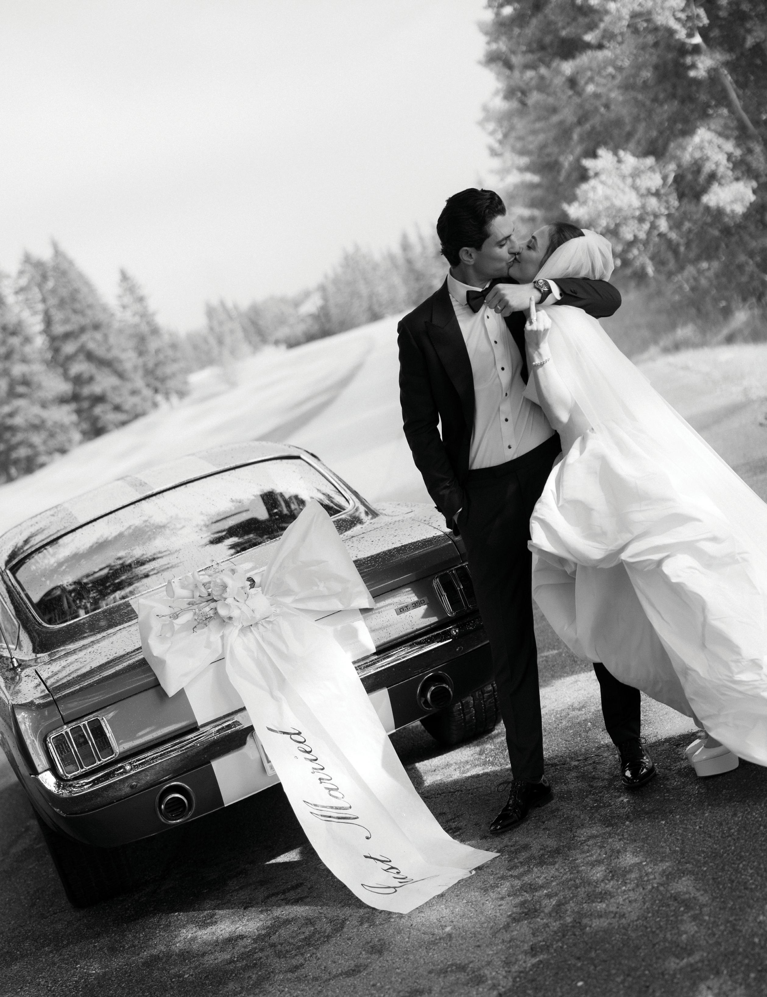 Makenzie and Alex planned a cozy, cabininspired wedding with Ralph Lauren flair for 90 guests at Beano’s Cabin. Opting not to do a first look, Alex first saw his bride in a stunning Dana Harel gown as she walked down the aisle toward the sweeping peaks of the Rockies, her cathedrallength veil drifting in the wind. For the reception, pops of yellow wildflowers and the glow of candlelight accented the tables, adding to the intimate, familydinner atmosphere that ended up being the couple’s favorite part of the day.. Looking back, Makenzie shared, “Once the dance floor opened, it never stopped; friends on shoulders, spins straight out of Blades of Glory and even a few ripped suit pants. We felt endlessly celebrated and so loved.”