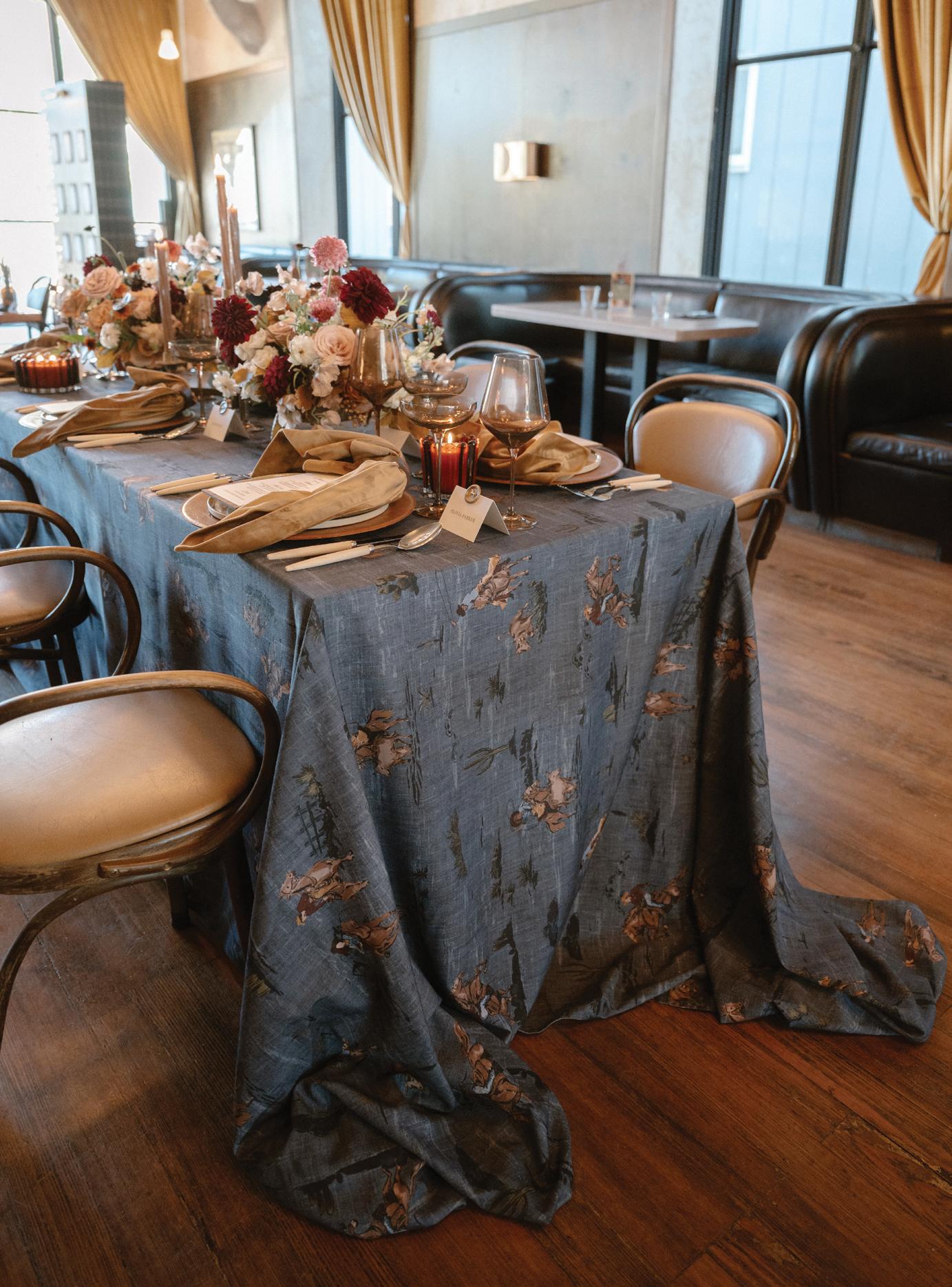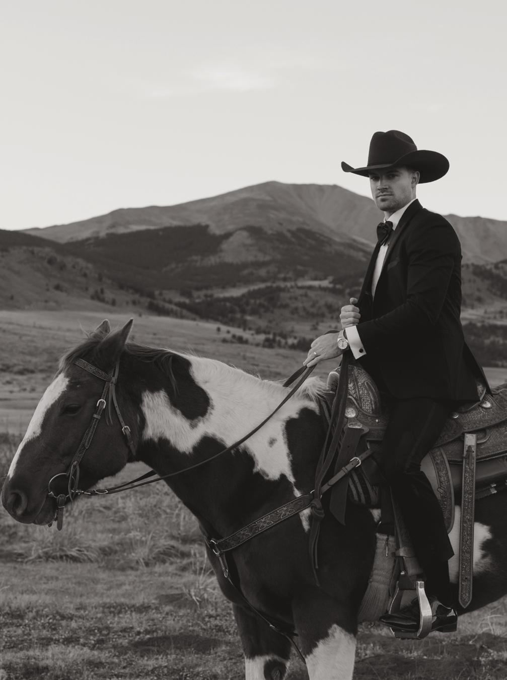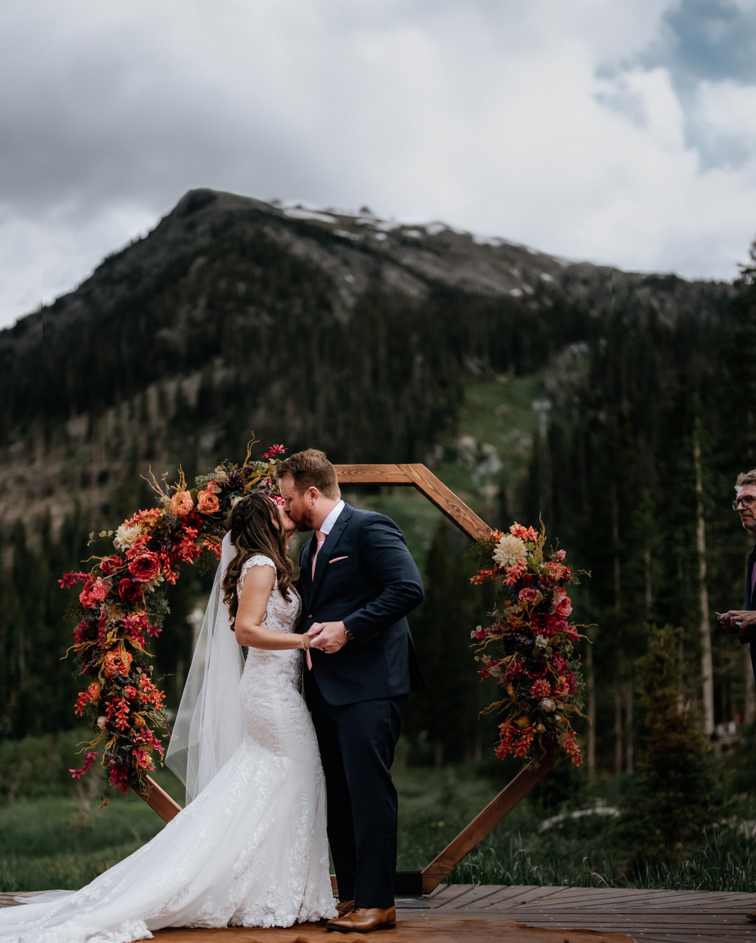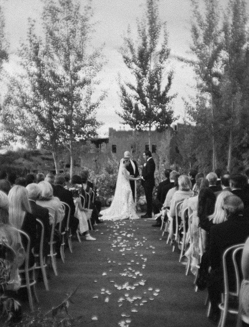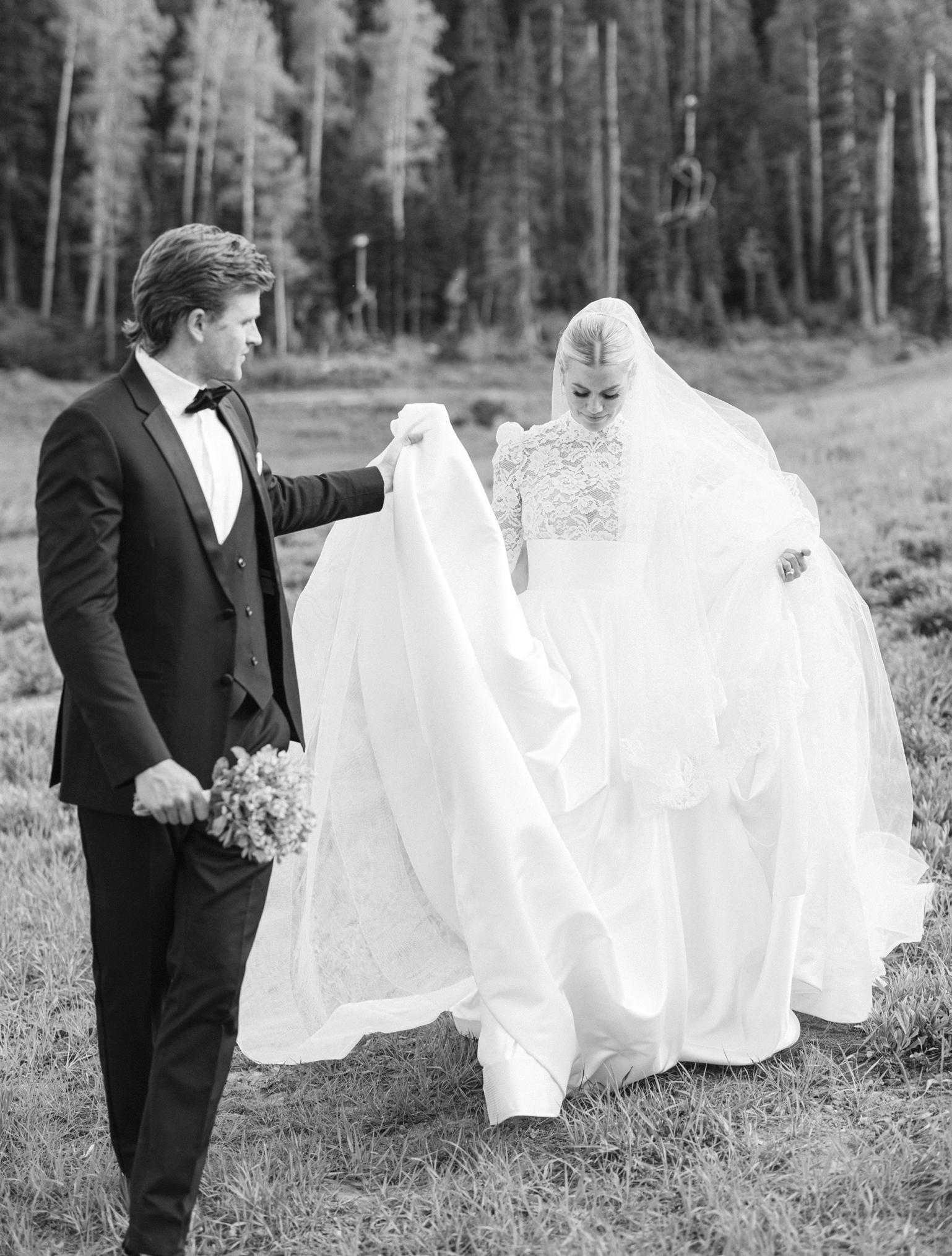 Makenzie and Alex planned a cozy, cabininspired wedding with Ralph Lauren flair for 90 guests at Beano’s Cabin. Opting not to do a first look, Alex first saw his bride in a stunning Dana Harel gown as she walked down the aisle toward the sweeping peaks of the Rockies, her cathedrallength veil drifting in the wind. For the reception, pops of yellow wildflowers and the glow of candlelight accented the tables, adding to the intimate, familydinner atmosphere that ended up being the couple’s favorite part of the day.. Looking back, Makenzie shared, “Once the dance floor opened, it never stopped; friends on shoulders, spins straight out of Blades of Glory and even a few ripped suit pants. We felt endlessly celebrated and so loved.”