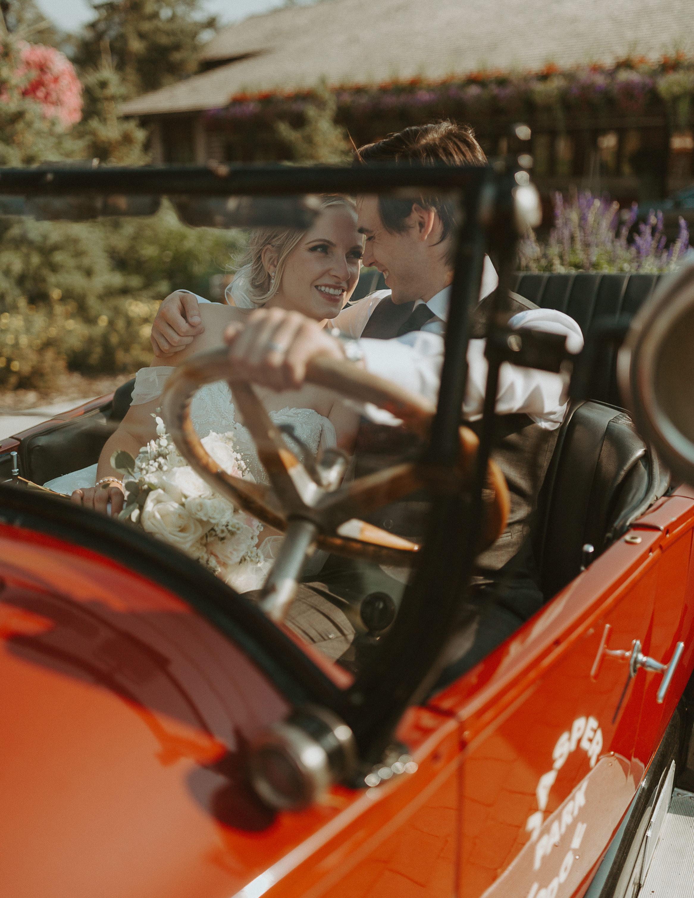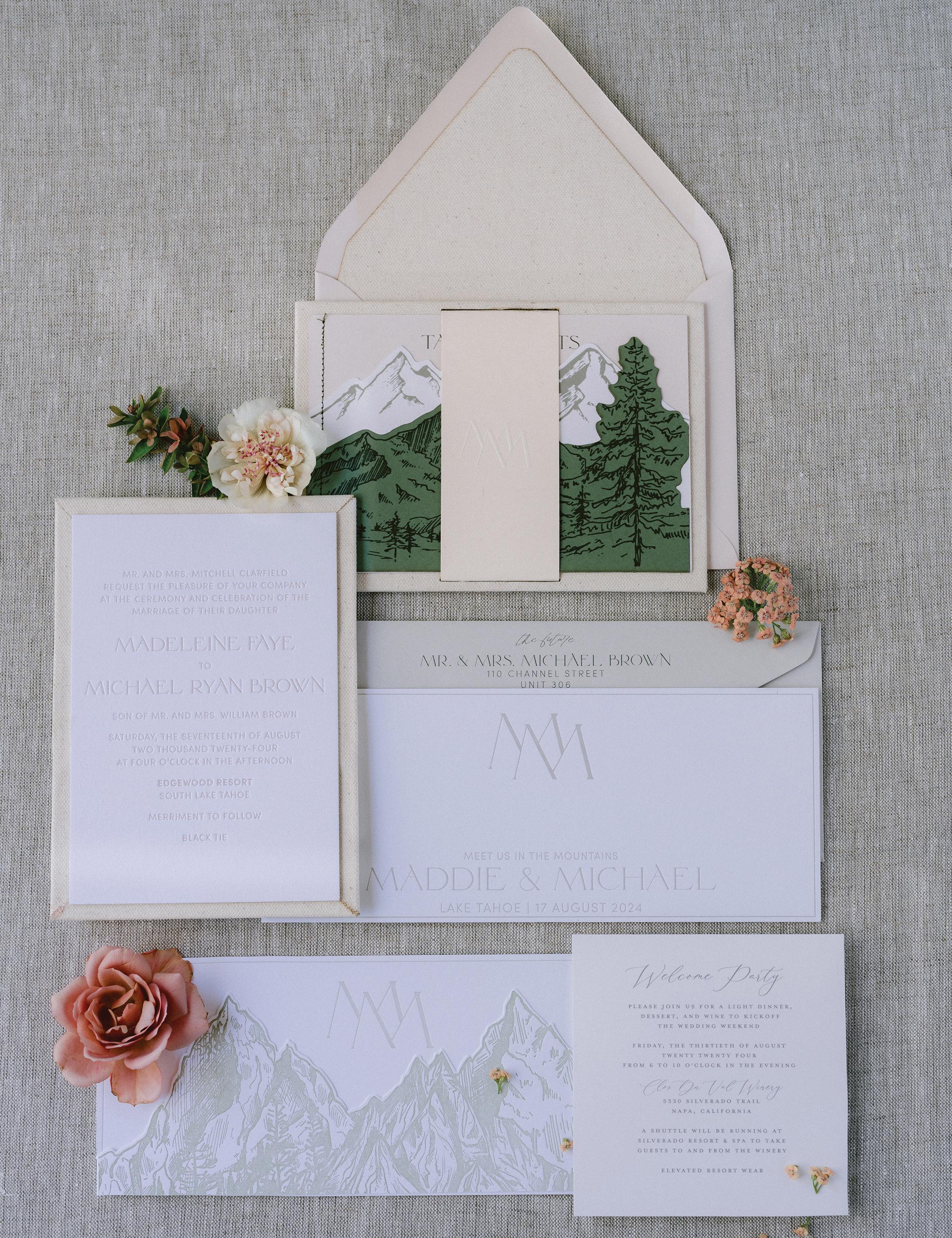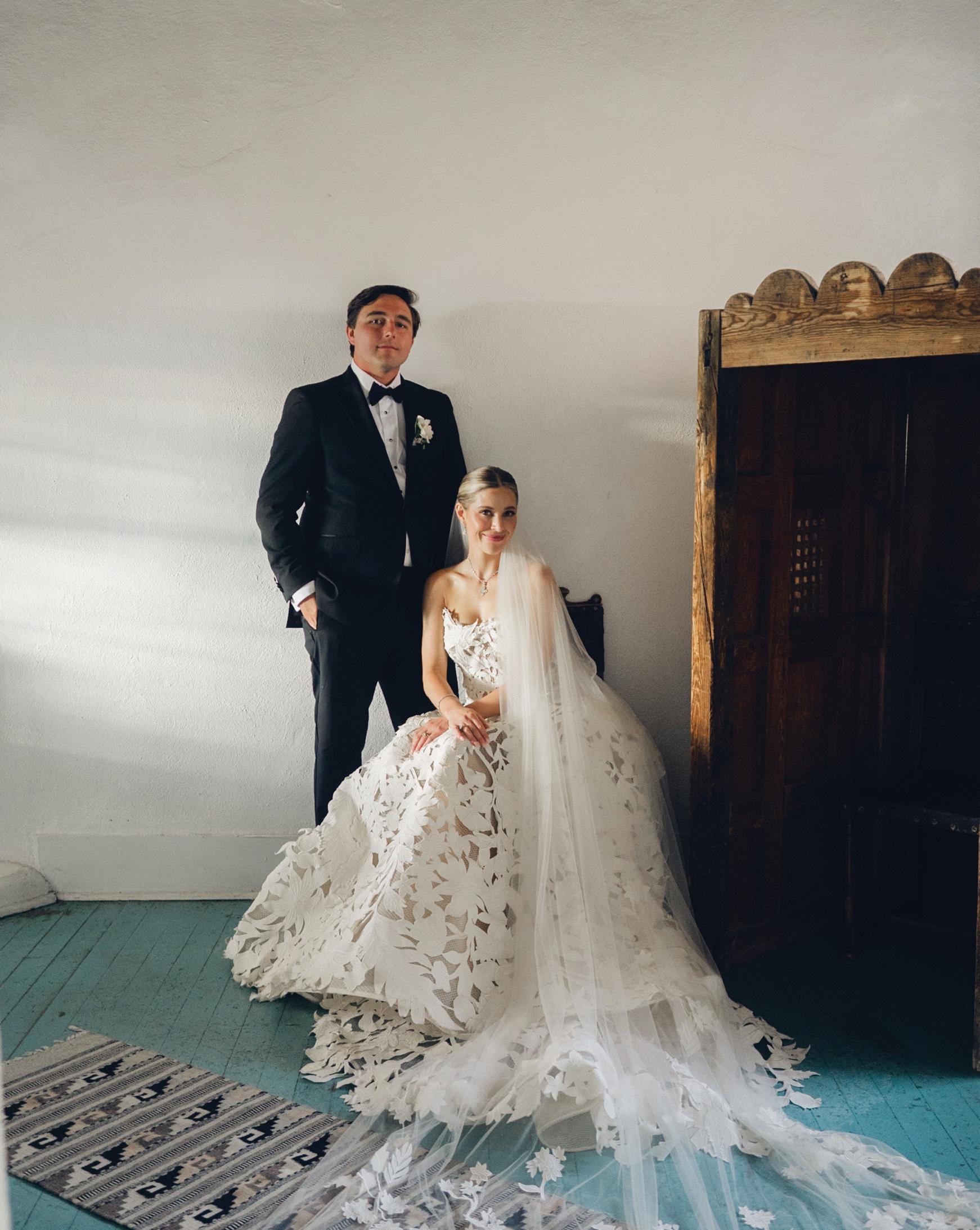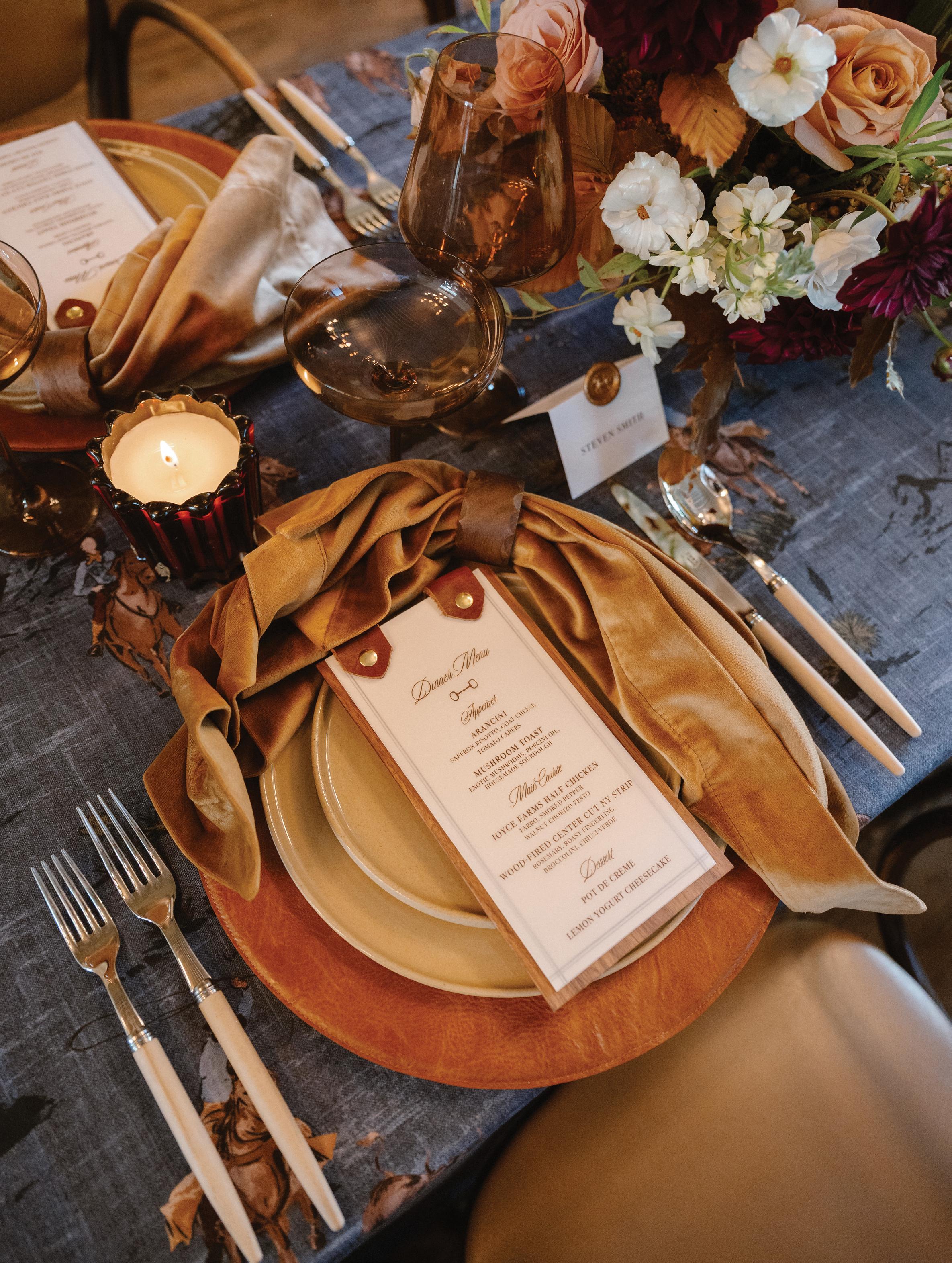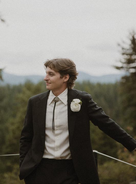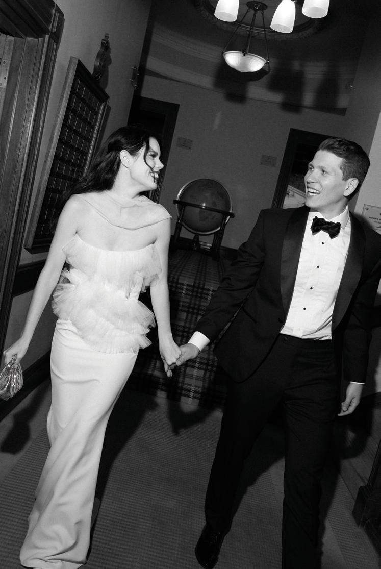 Makenzie and Alex planned a cozy, cabininspired wedding with Ralph Lauren flair for 90 guests at Beano’s Cabin. Opting not to do a first look, Alex first saw his bride in a stunning Dana Harel gown as she walked down the aisle toward the sweeping peaks of the Rockies, her cathedrallength veil drifting in the wind. For the reception, pops of yellow wildflowers and the glow of candlelight accented the tables, adding to the intimate, familydinner atmosphere that ended up being the couple’s favorite part of the day.. Looking back, Makenzie shared, “Once the dance floor opened, it never stopped; friends on shoulders, spins straight out of Blades of Glory and even a few ripped suit pants. We felt endlessly celebrated and so loved.”