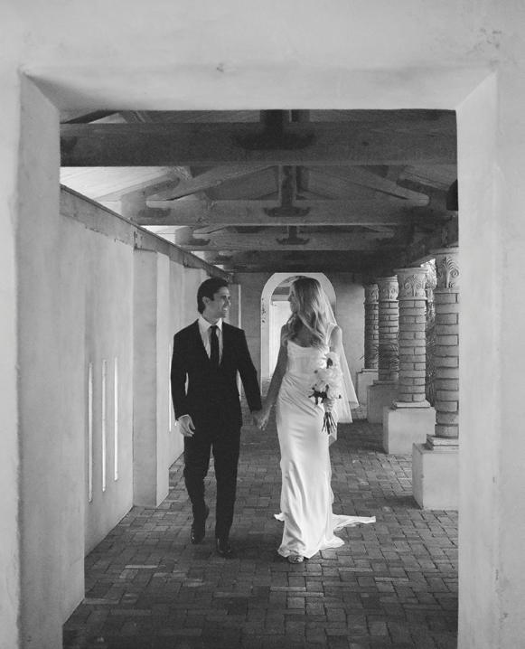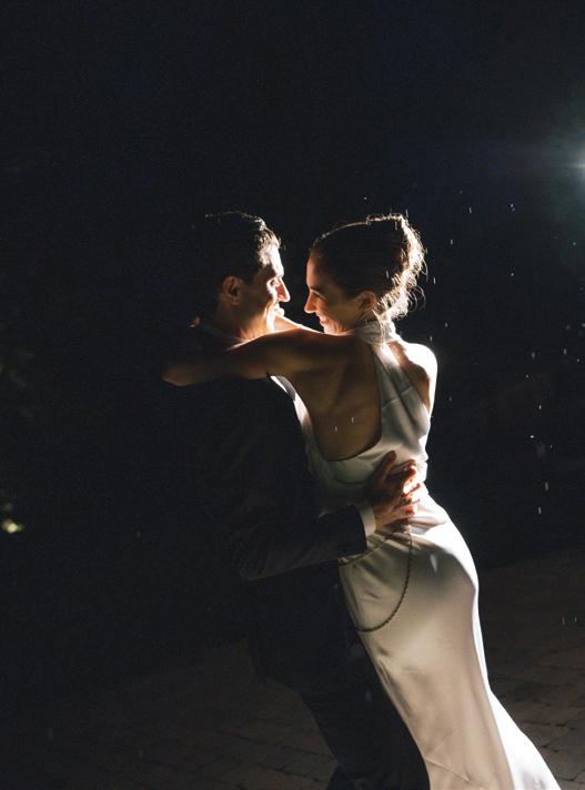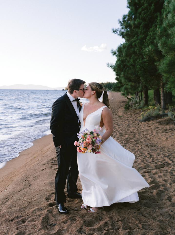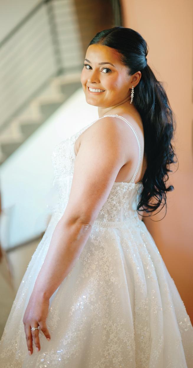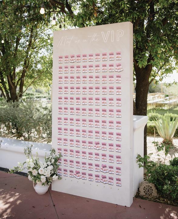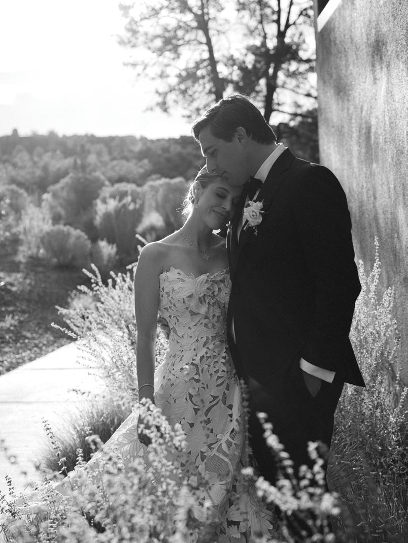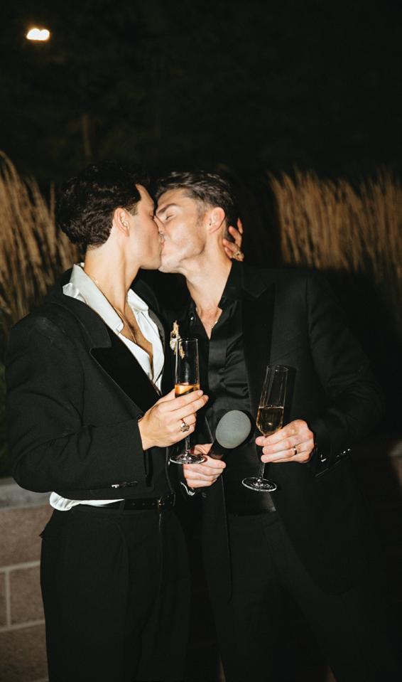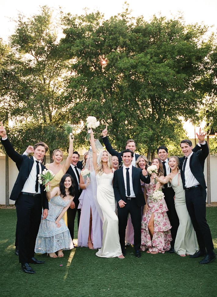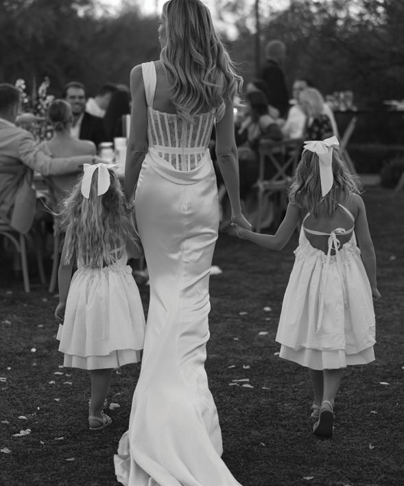 Kelsey and Kieran planned an old-world Italian celebration at The Bellagio for 105 of their closest friends and family. Now calling Las Vegas home, choosing the iconic resort felt like the perfect fit for their vision and the start of their forever together. Their ceremony unfolded on the Julietstyle terrace framed with lush calla lilies, a meaningful choice, as they were the same flowers Kieran’s late mother, Amy, carried on her own wedding day. Kieran and his brother also wore lockets tucked inside their jackets to keep her close. After exchanging vows, guests moved into a candlelit reception where long satin-draped tables, crystal glassware and towering arrangements created a warm, romantic glow. The night was filled with espresso martinis, heartfelt toasts and a packed dance floor before Kelsey and Kieran ended the evening with everyone letting loose to “Unwritten” by Natasha Bedingfield.