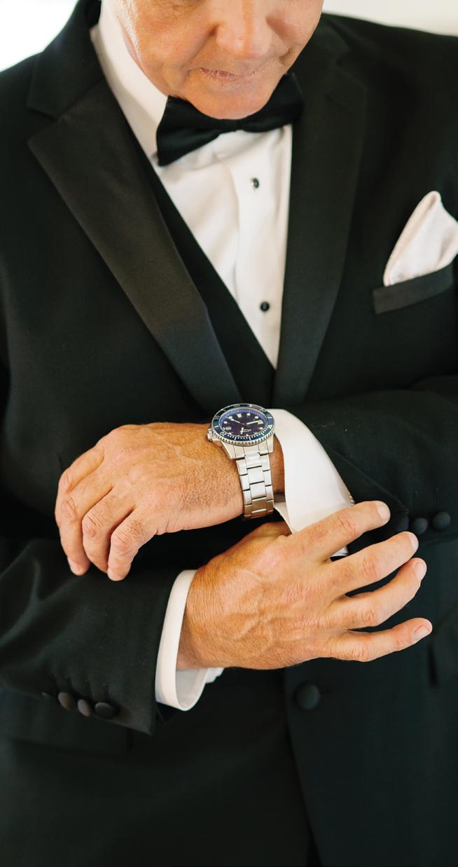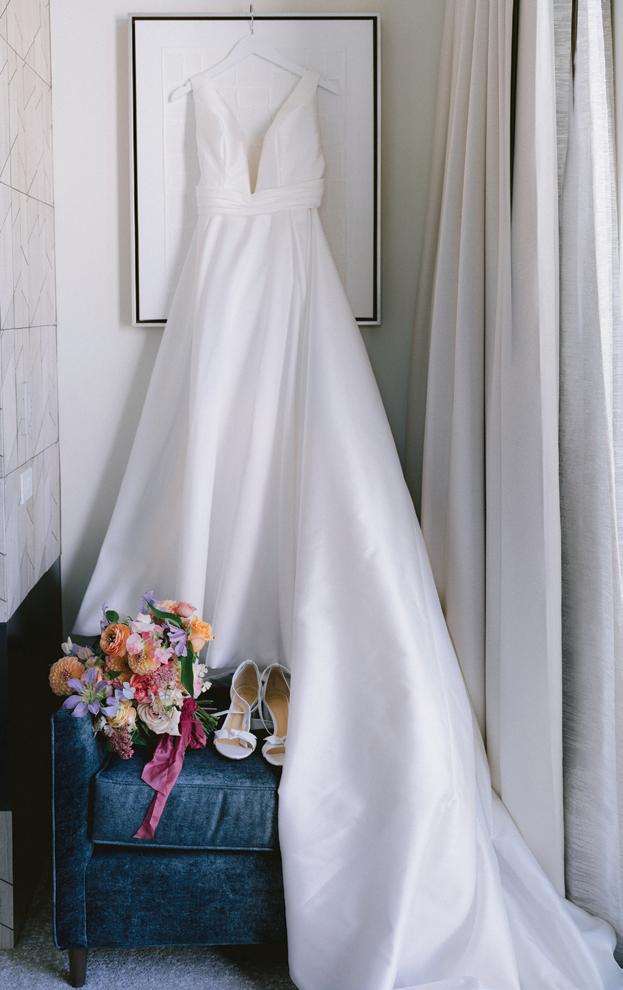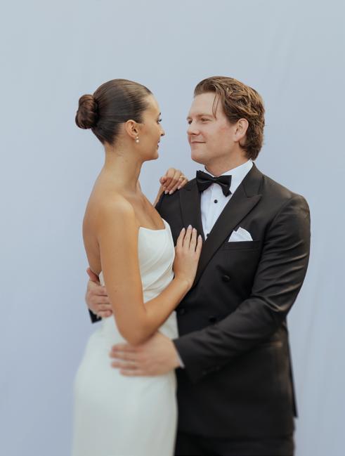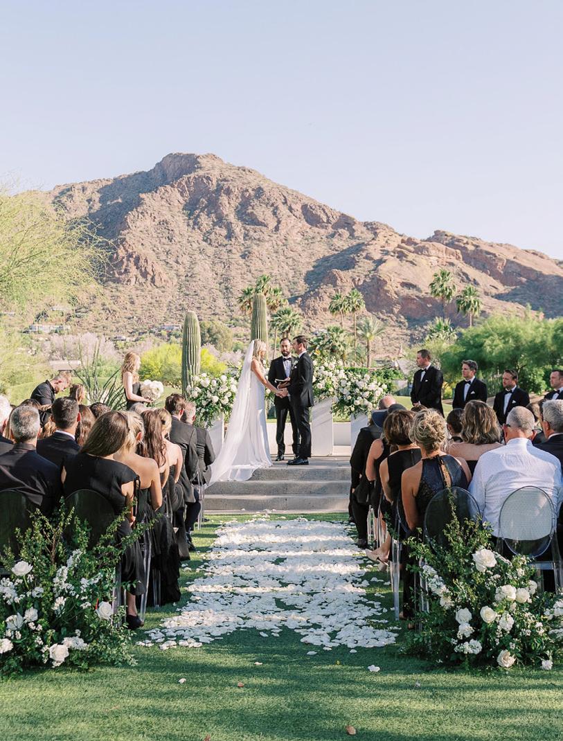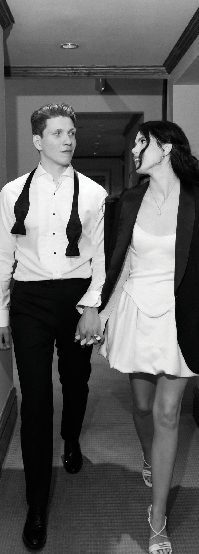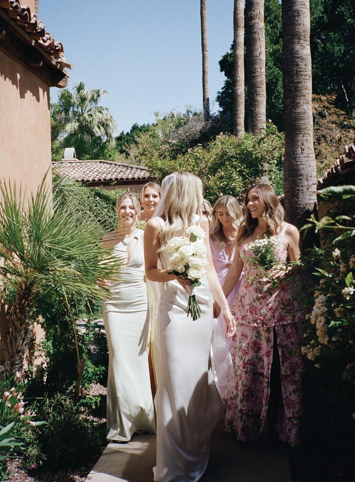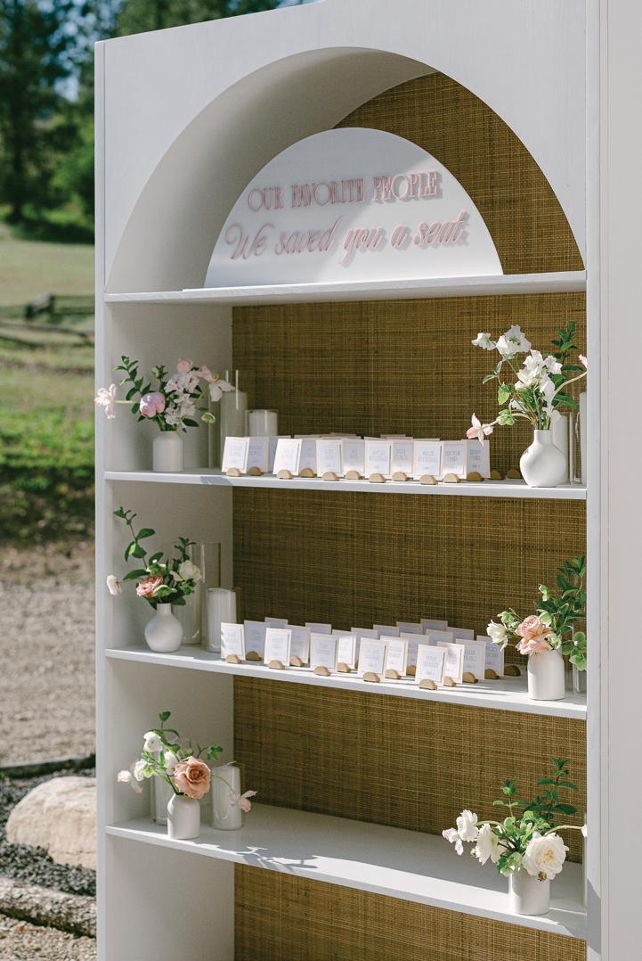 Kelsey and Kieran planned an old-world Italian celebration at The Bellagio for 105 of their closest friends and family. Now calling Las Vegas home, choosing the iconic resort felt like the perfect fit for their vision and the start of their forever together. Their ceremony unfolded on the Julietstyle terrace framed with lush calla lilies, a meaningful choice, as they were the same flowers Kieran’s late mother, Amy, carried on her own wedding day. Kieran and his brother also wore lockets tucked inside their jackets to keep her close. After exchanging vows, guests moved into a candlelit reception where long satin-draped tables, crystal glassware and towering arrangements created a warm, romantic glow. The night was filled with espresso martinis, heartfelt toasts and a packed dance floor before Kelsey and Kieran ended the evening with everyone letting loose to “Unwritten” by Natasha Bedingfield.