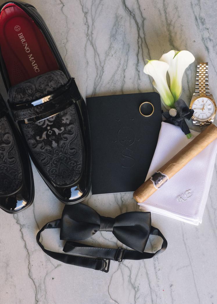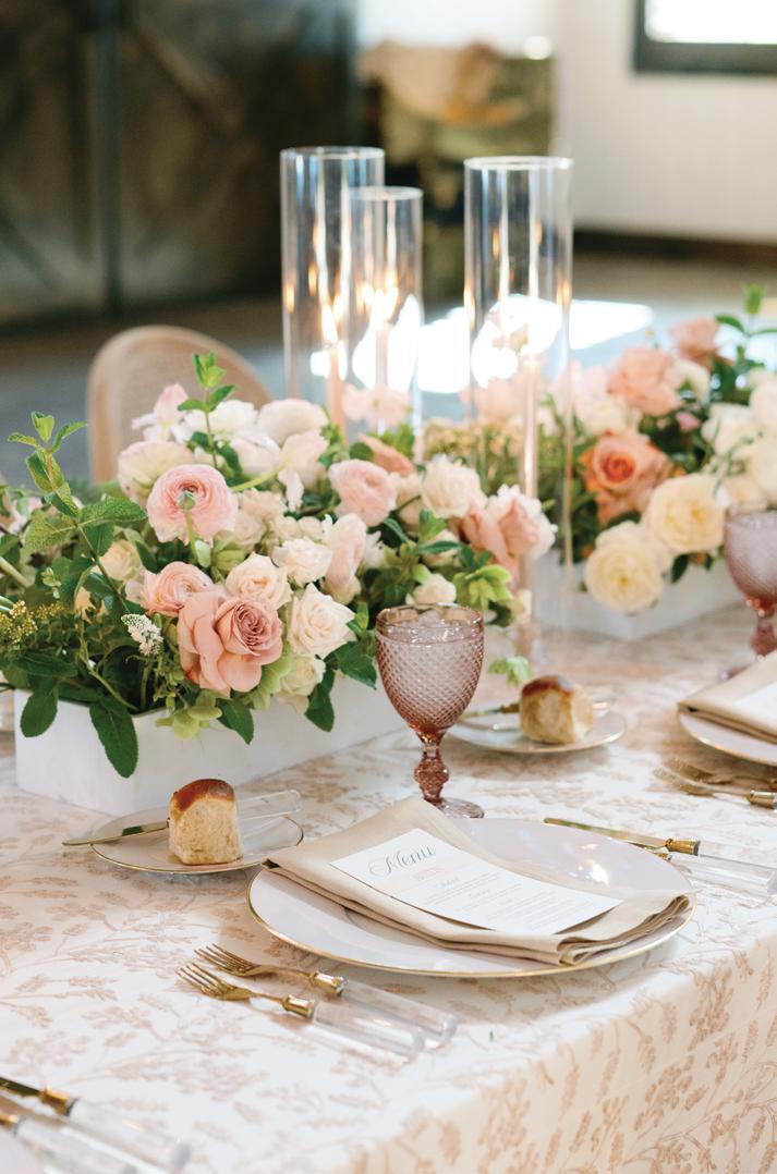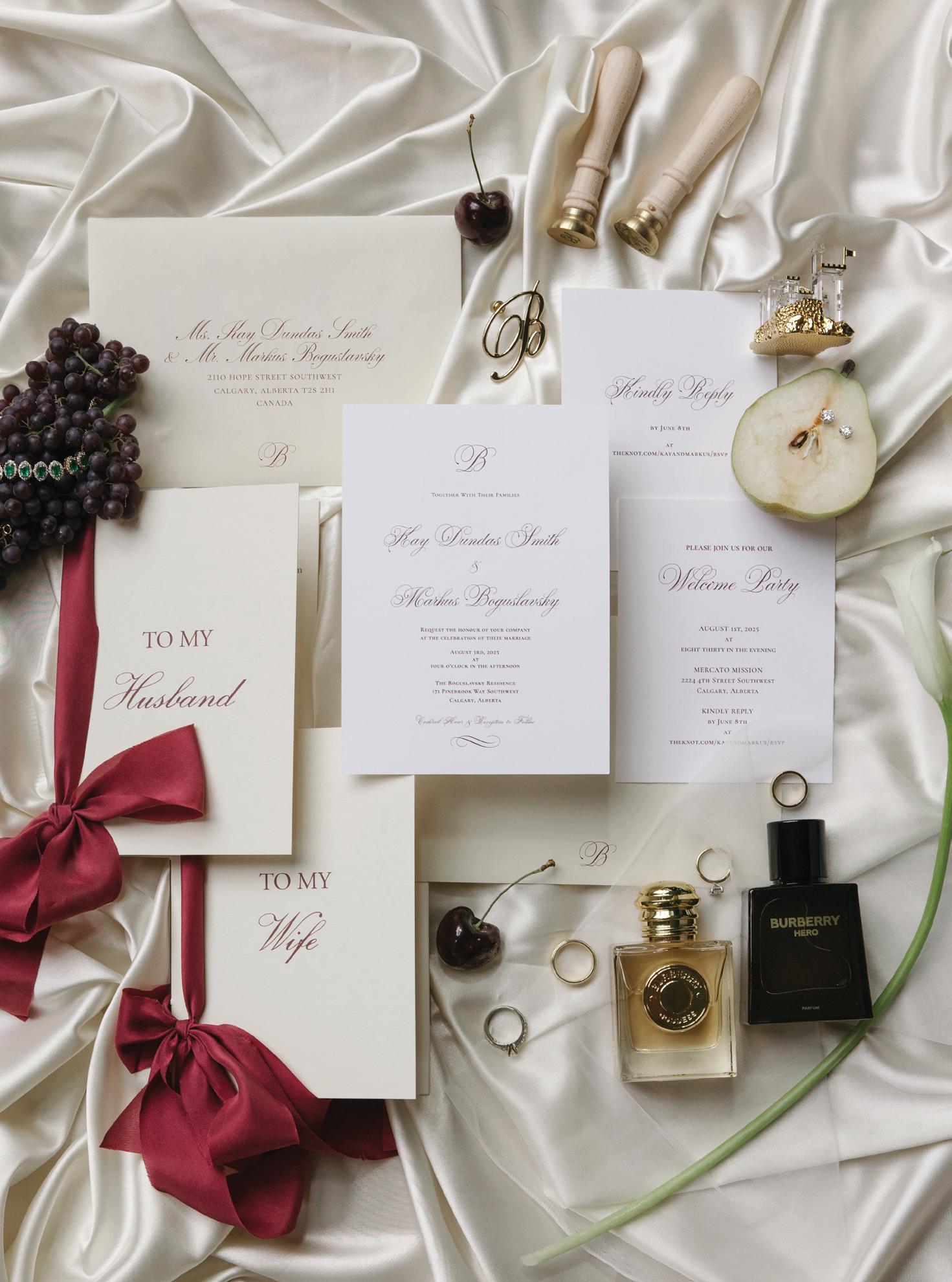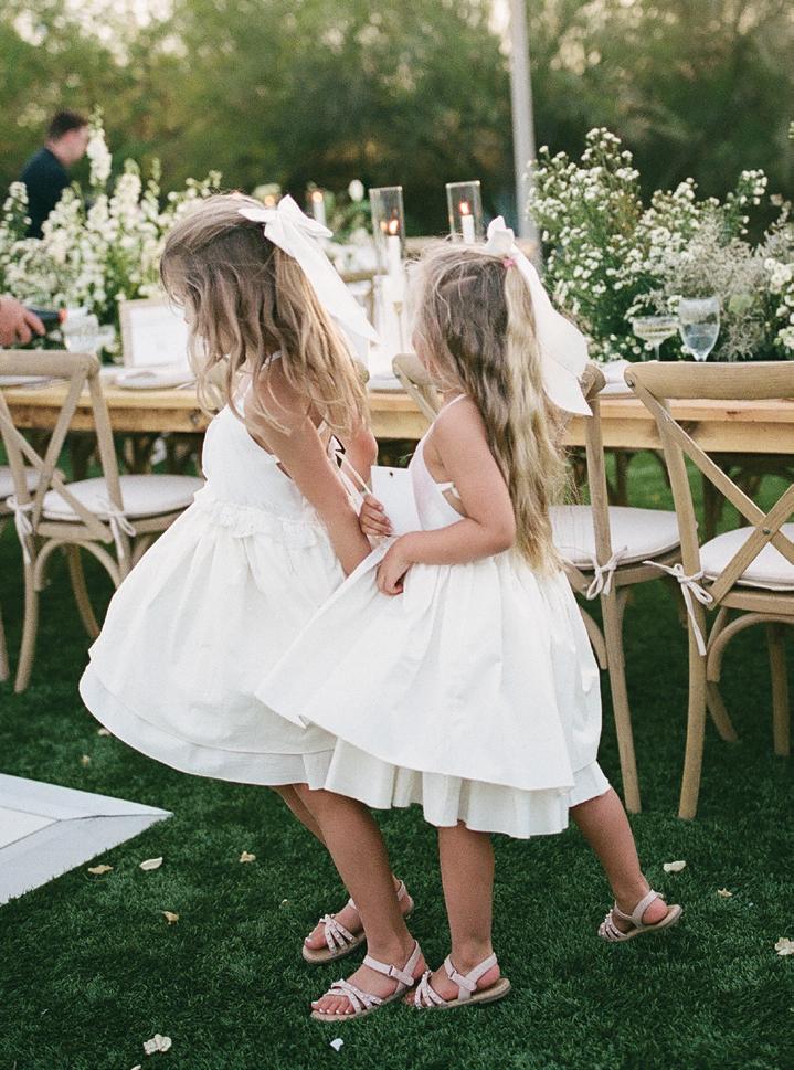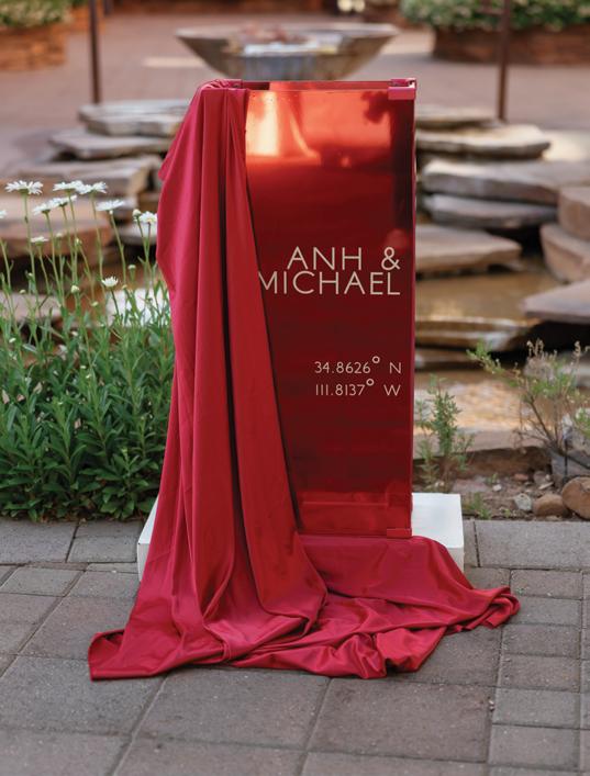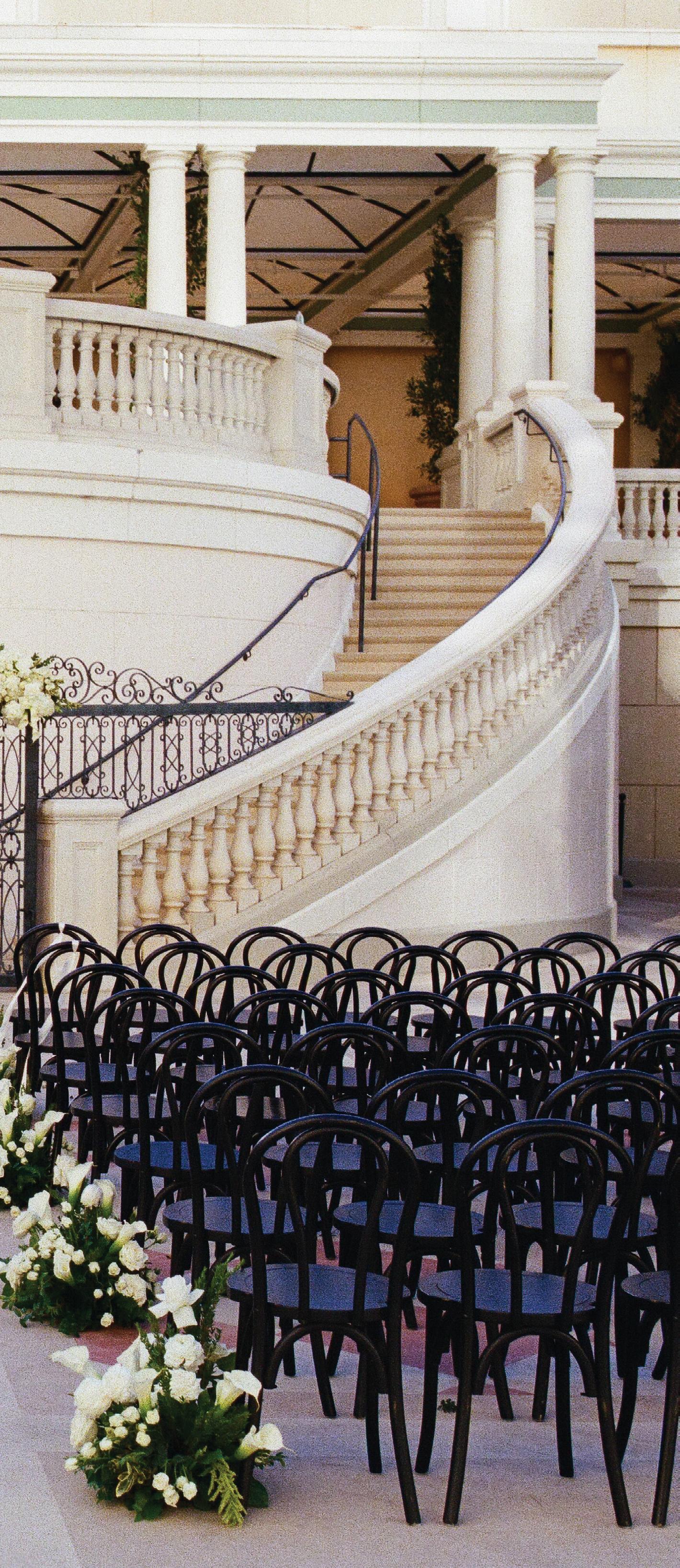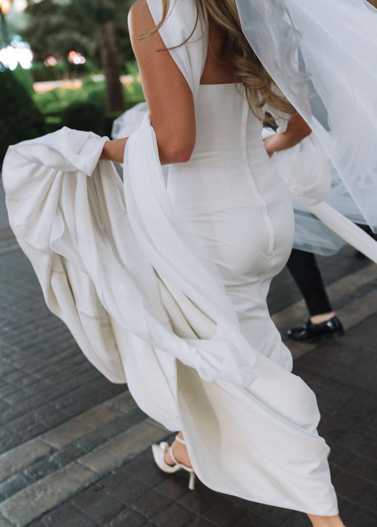 Kelsey and Kieran planned an old-world Italian celebration at The Bellagio for 105 of their closest friends and family. Now calling Las Vegas home, choosing the iconic resort felt like the perfect fit for their vision and the start of their forever together. Their ceremony unfolded on the Julietstyle terrace framed with lush calla lilies, a meaningful choice, as they were the same flowers Kieran’s late mother, Amy, carried on her own wedding day. Kieran and his brother also wore lockets tucked inside their jackets to keep her close. After exchanging vows, guests moved into a candlelit reception where long satin-draped tables, crystal glassware and towering arrangements created a warm, romantic glow. The night was filled with espresso martinis, heartfelt toasts and a packed dance floor before Kelsey and Kieran ended the evening with everyone letting loose to “Unwritten” by Natasha Bedingfield.