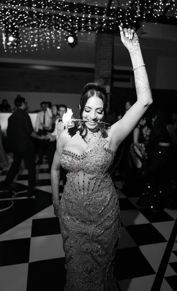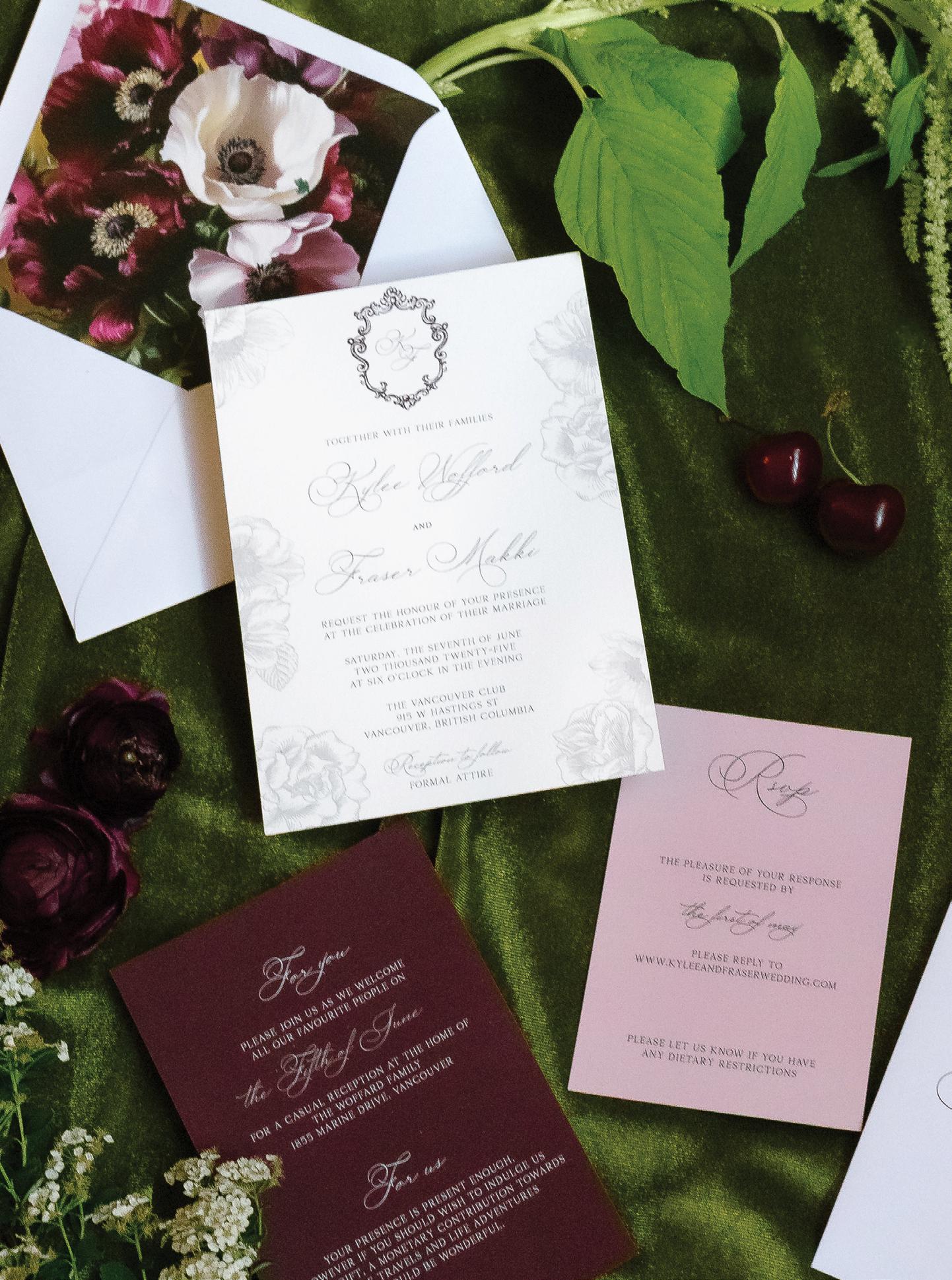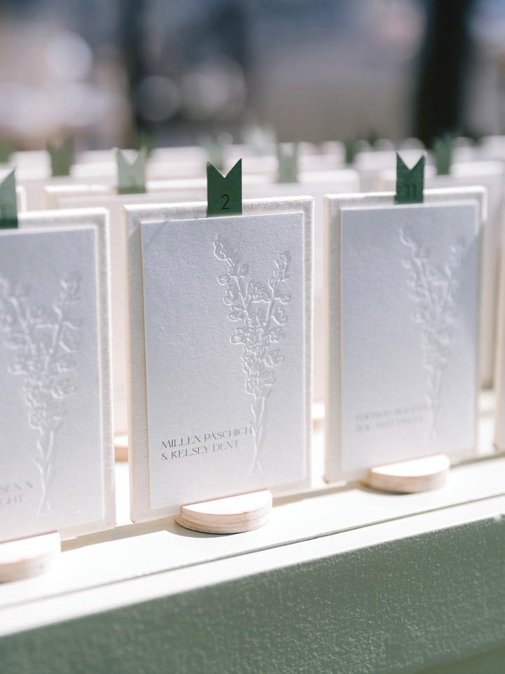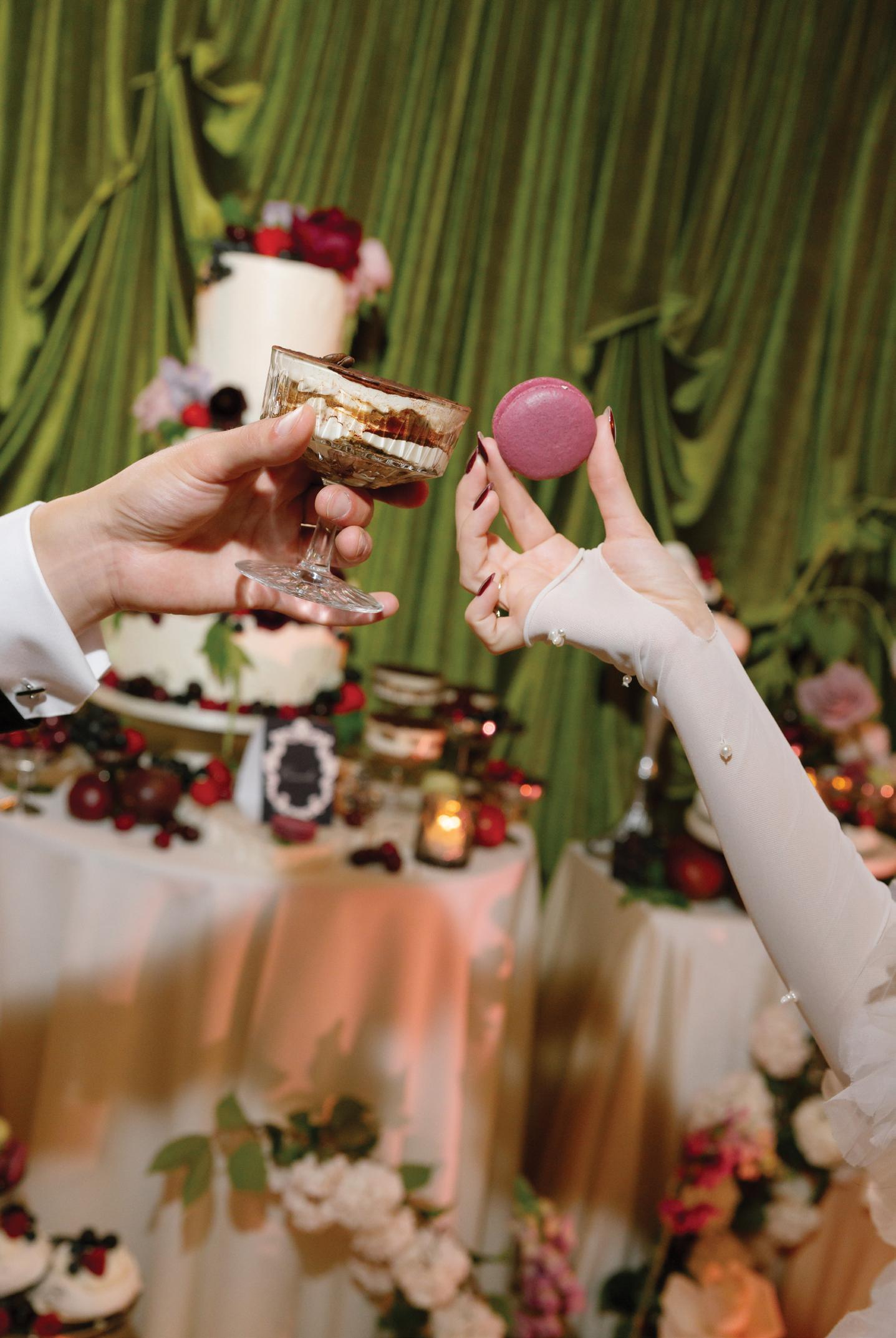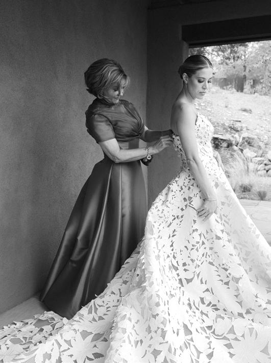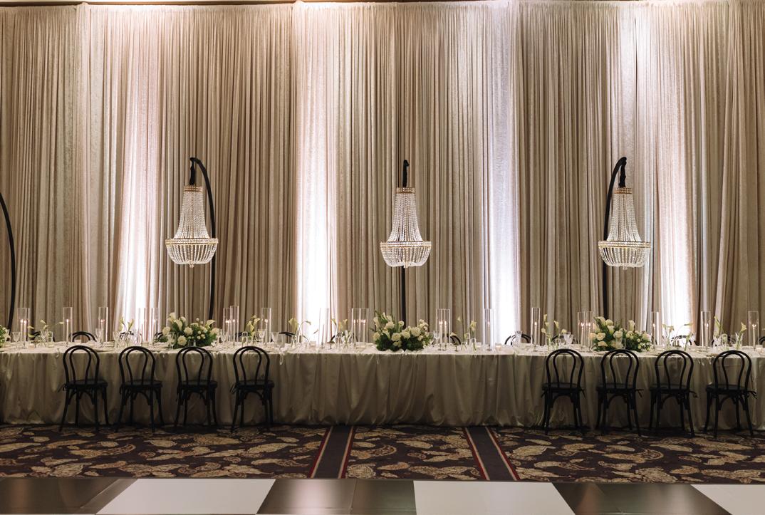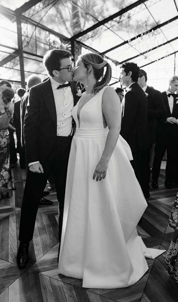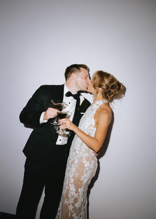 Kelsey and Kieran planned an old-world Italian celebration at The Bellagio for 105 of their closest friends and family. Now calling Las Vegas home, choosing the iconic resort felt like the perfect fit for their vision and the start of their forever together. Their ceremony unfolded on the Julietstyle terrace framed with lush calla lilies, a meaningful choice, as they were the same flowers Kieran’s late mother, Amy, carried on her own wedding day. Kieran and his brother also wore lockets tucked inside their jackets to keep her close. After exchanging vows, guests moved into a candlelit reception where long satin-draped tables, crystal glassware and towering arrangements created a warm, romantic glow. The night was filled with espresso martinis, heartfelt toasts and a packed dance floor before Kelsey and Kieran ended the evening with everyone letting loose to “Unwritten” by Natasha Bedingfield.