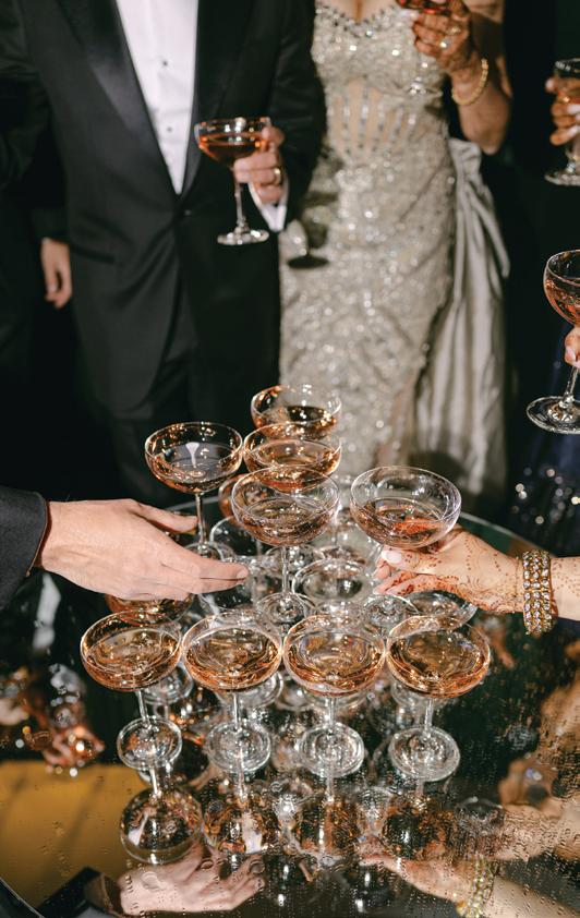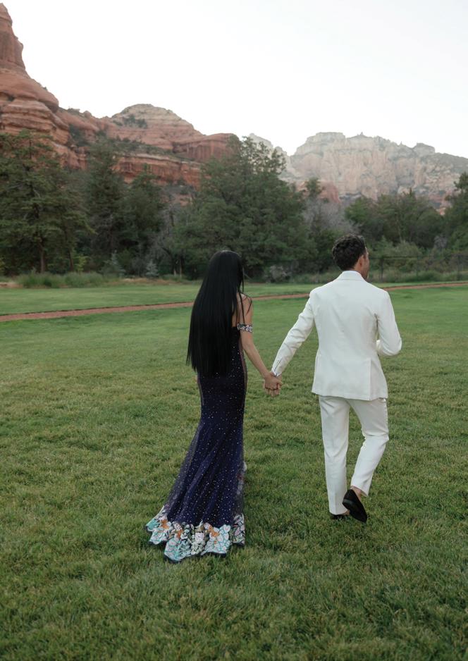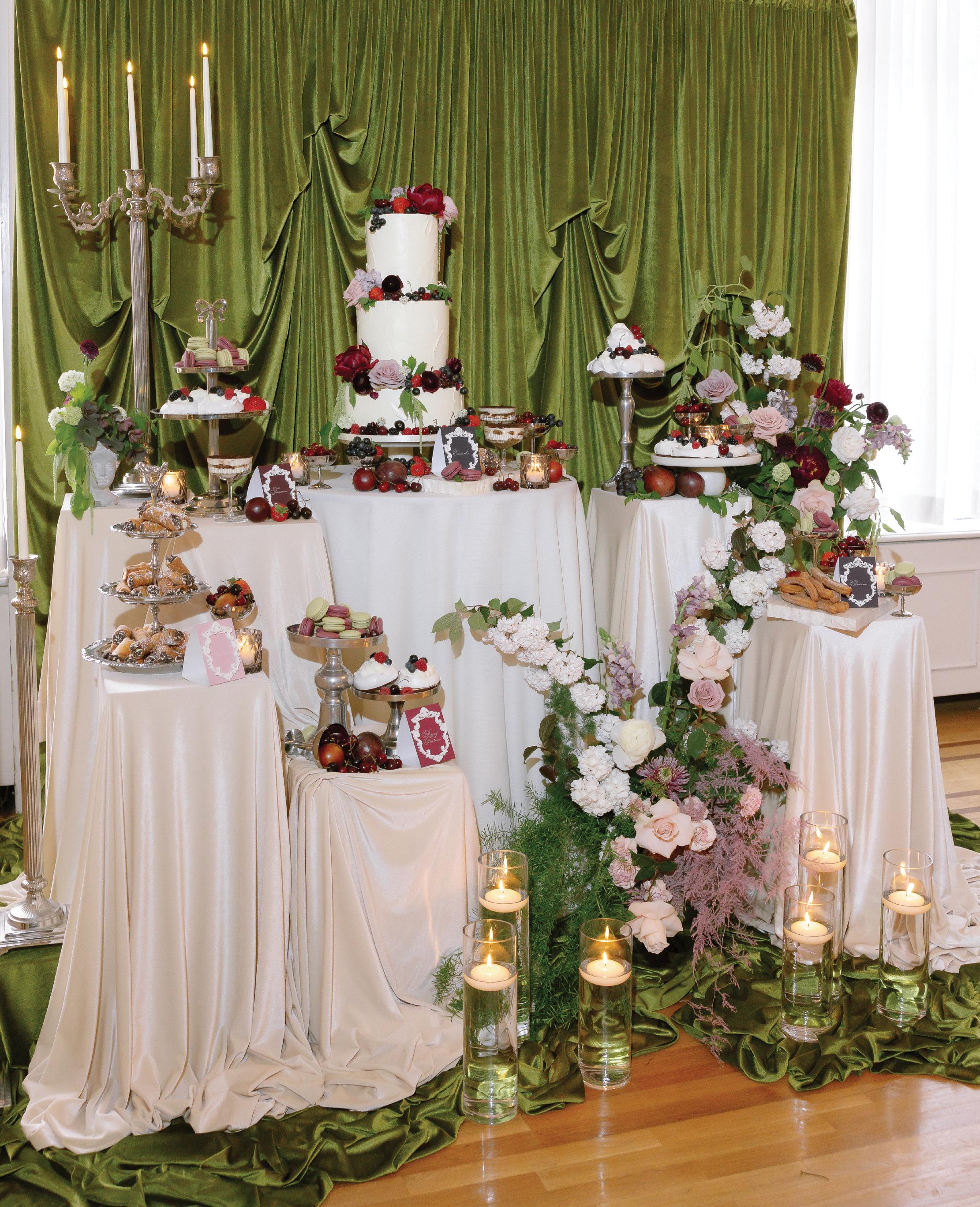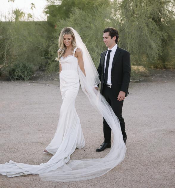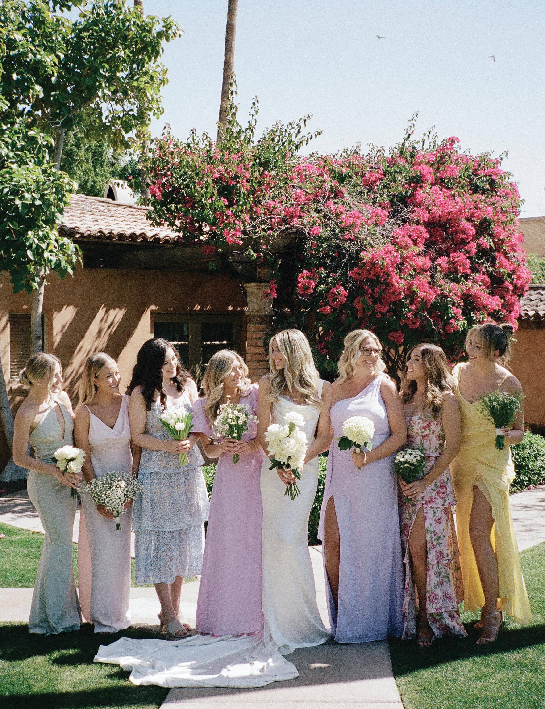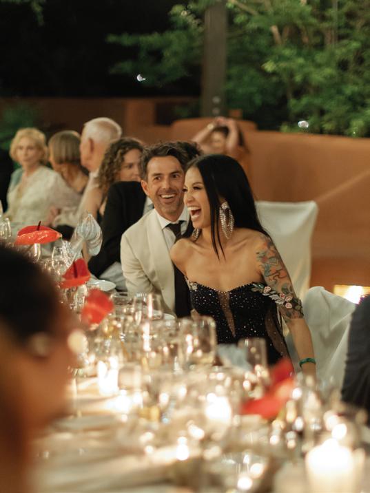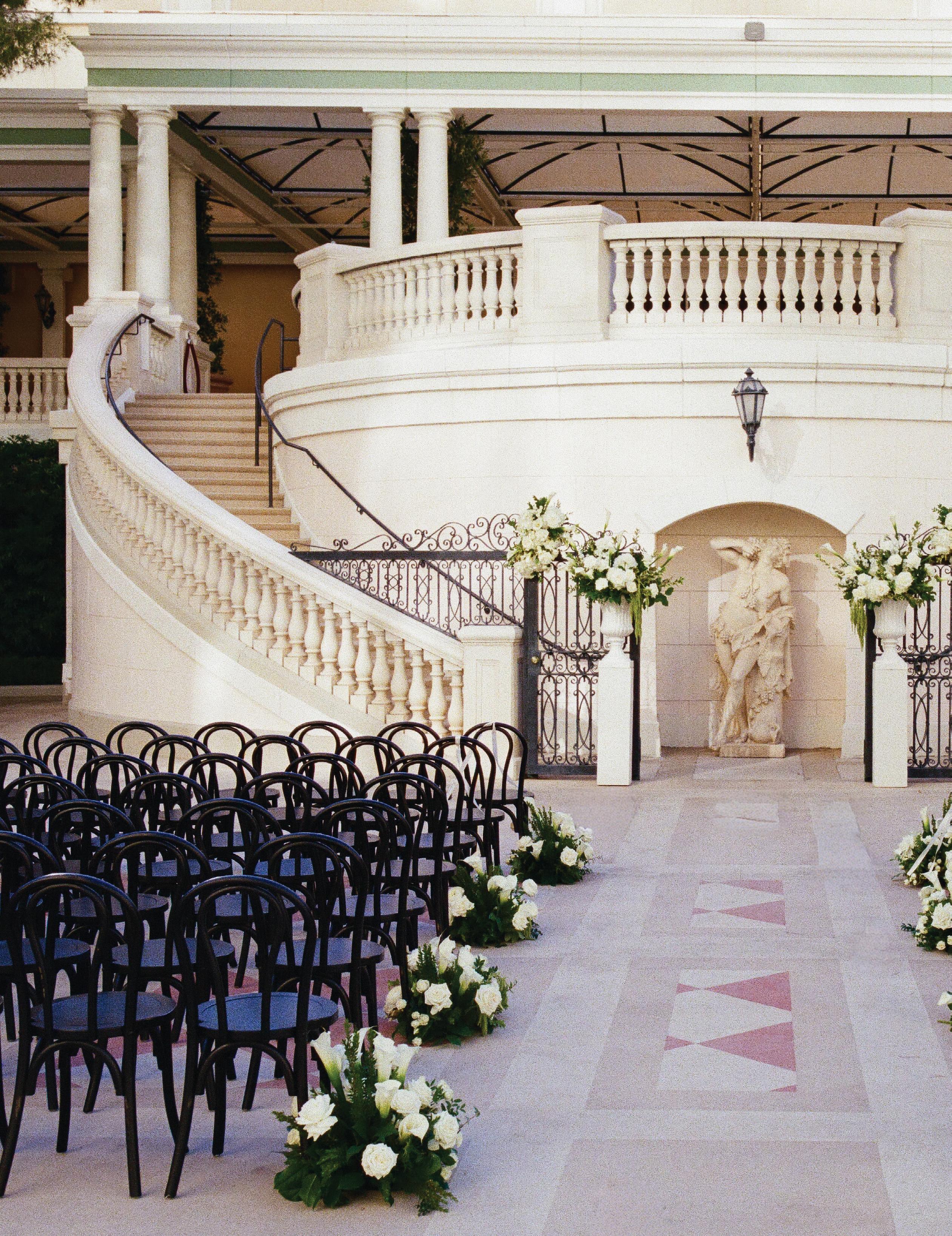 Kelsey and Kieran planned an old-world Italian celebration at The Bellagio for 105 of their closest friends and family. Now calling Las Vegas home, choosing the iconic resort felt like the perfect fit for their vision and the start of their forever together. Their ceremony unfolded on the Julietstyle terrace framed with lush calla lilies, a meaningful choice, as they were the same flowers Kieran’s late mother, Amy, carried on her own wedding day. Kieran and his brother also wore lockets tucked inside their jackets to keep her close. After exchanging vows, guests moved into a candlelit reception where long satin-draped tables, crystal glassware and towering arrangements created a warm, romantic glow. The night was filled with espresso martinis, heartfelt toasts and a packed dance floor before Kelsey and Kieran ended the evening with everyone letting loose to “Unwritten” by Natasha Bedingfield.