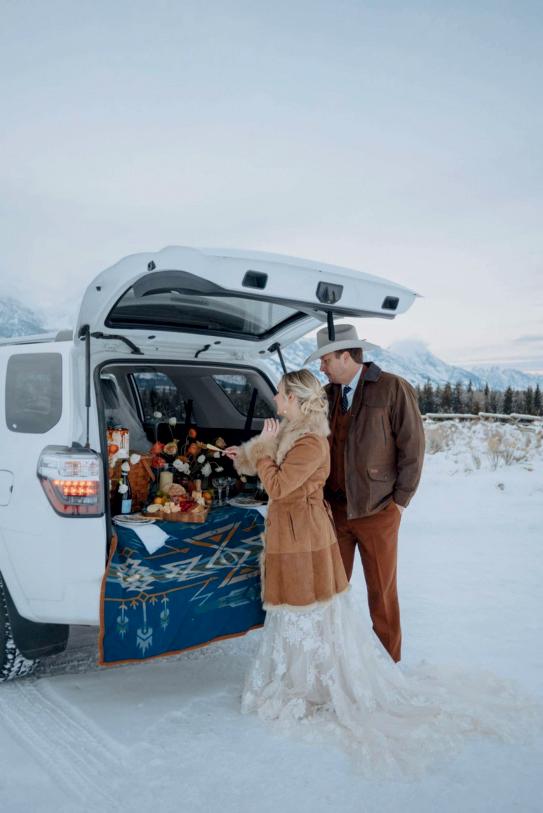 There’s something undeniably fun about grabbing little nibbles or a cocktail straight from a stylish trolley. For couples planning a Jackson Hole celebration, Provisions brings this playful experience to life with their mobile catering trolley. Known for their elevated rustic western vibe and inspired by both travel and the rich abundance of local ingredients, Provisions turns wedding dining into a delicious, interactive experience your guests will never forget.