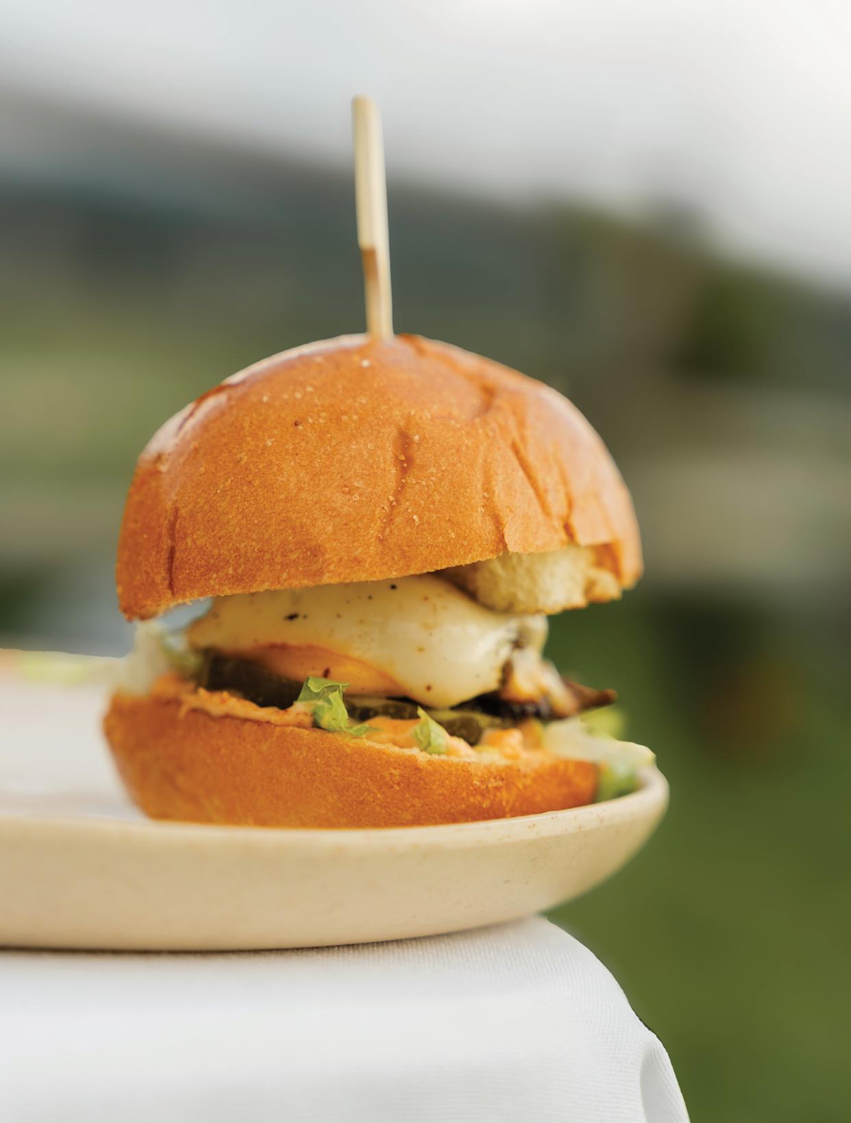 shredded lettuce, cheese, bread & butter pickles, secret sauce on a brioche bun