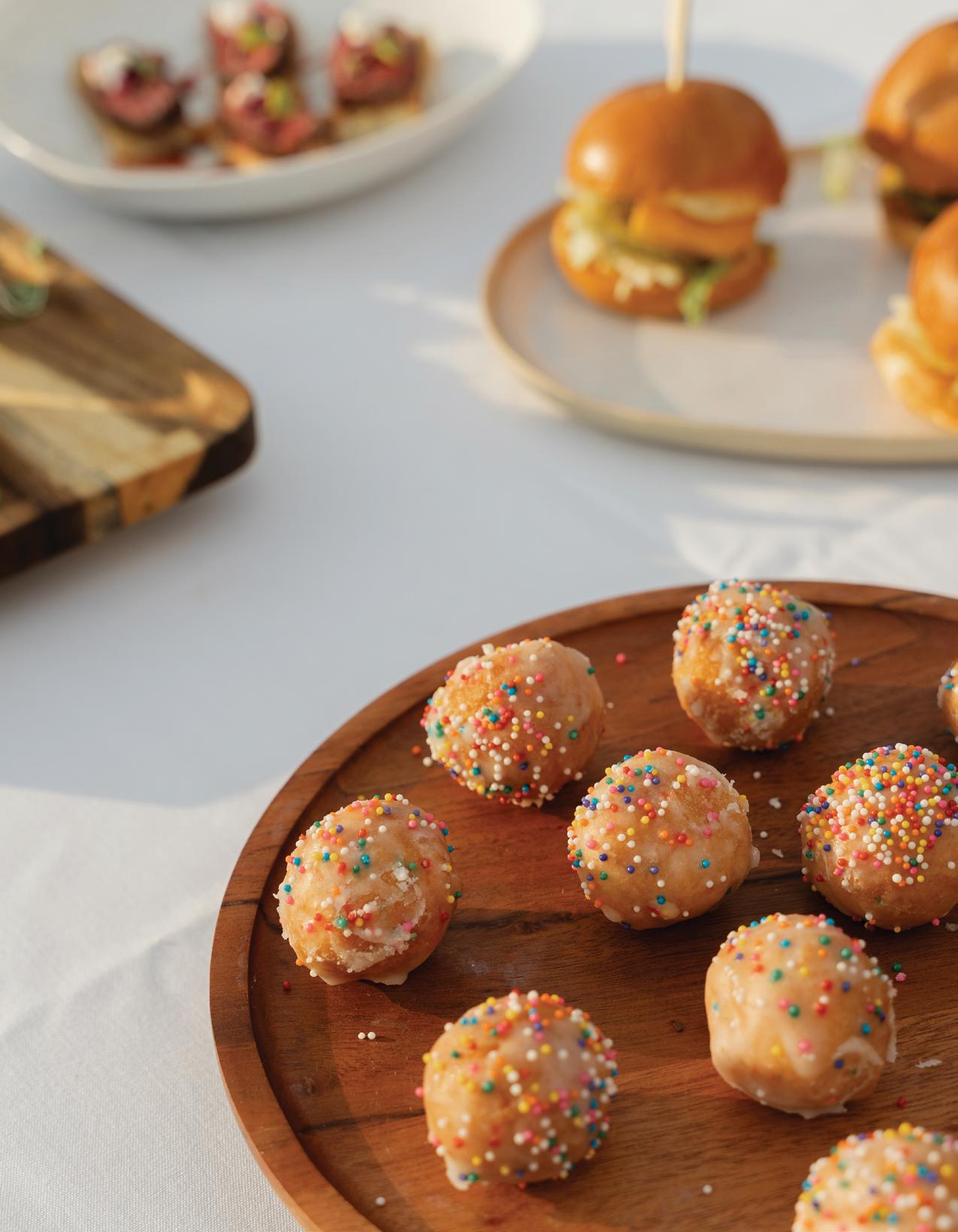 Inspire your taste buds with Provisions’ most popular crowd-pleasing bites. From savory sliders stacked with bold flavors to buttery lobster rolls topped with fresh herbs, each dish is crafted to delight. Guests can indulge in flaky puff pastry squares featuring seasonal ingredients, or end the night on a sweet note with playful donut holes covered in colorful sprinkles. With endless customizable options, couples can work alongside the Provisions team to design a menu that perfectly complements their celebration.