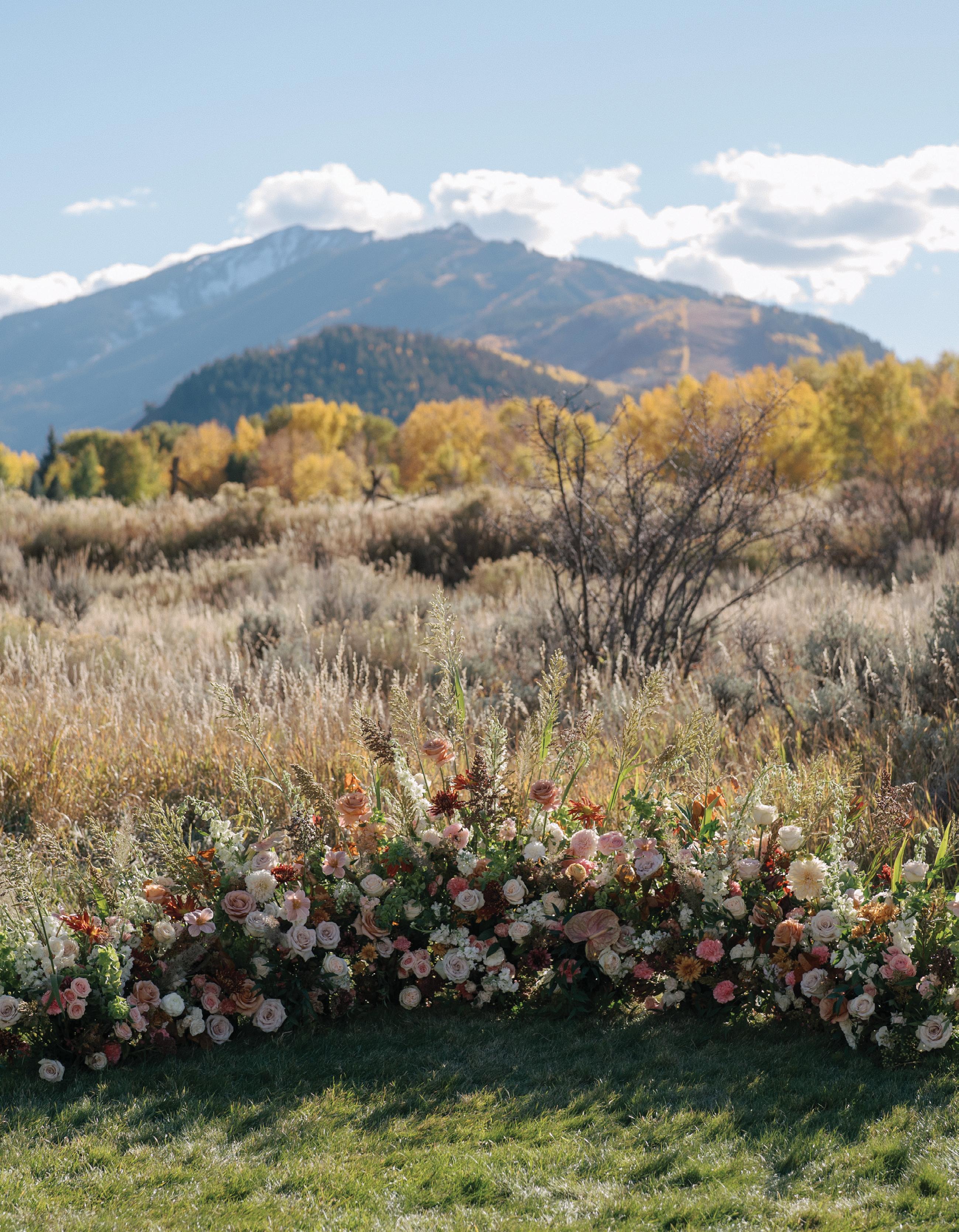 Whitney from The Story of Flowers put my floral vision into words so beautifully, she said “Evoking the feeling of stumbling upon a wildflower superbloom on the hillside...”, “by prioritizing seasonal ingredients grown locally in Colorado. Soft, warm, earthy palette reminiscent of the wildflowers, grasses, and aspens native to the Rockies.” She has an incredible eye.
