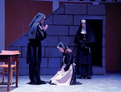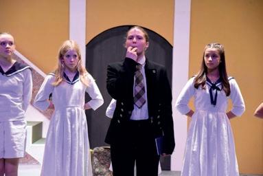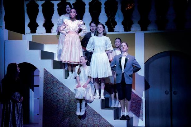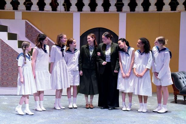 to Friedrich, while Jemima and Maisa played the perceptive Brigitta with a truthful sincerity. Niamh and Shahdi captured Louisa’s mischievous streak with charm and wit, while Audrey and Tilly brought Kurt’s enthusiasm and eagerness to life. Jolie and Sara were delightful as Marta, showcasing her sweet and affectionate nature, and Josie and Cleo perfectly embodied the adorable Gretl. Together, they completed the Von Trapp family with natural stage presence, their voices blending beautifully in heartwarming numbers like Do-Re-Mi and The Lonely Goatherd