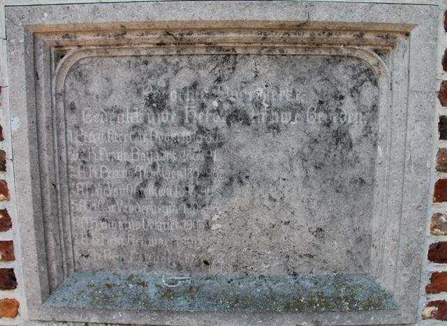 N01W04 Duurbare gedachtenis van den Heer Carolus Ludovicus Braet geboren te Ruisselede den 4 september 1854 overleden te Doomkerke den 5 januari 1938 en van zijne echtgenoote vrouw Leonie Standaert geboren te Ruisselede den 24 november 1860