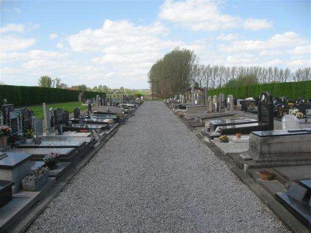 Aan de parochiekerk van Markegem vinden nog weinig terug van de oude begraafplaats.. Waarde graven lagen is nu een grasplein. Voor de kerk staat een beeld van een uil. Aan de voorgevel van de kerk is nog het oude kerkhofkruis terug te vinden. Naast de kerkdeur is en gedenkplaat voor de op 26 mei 1940 in Markegem gesneuvelde soldaten.