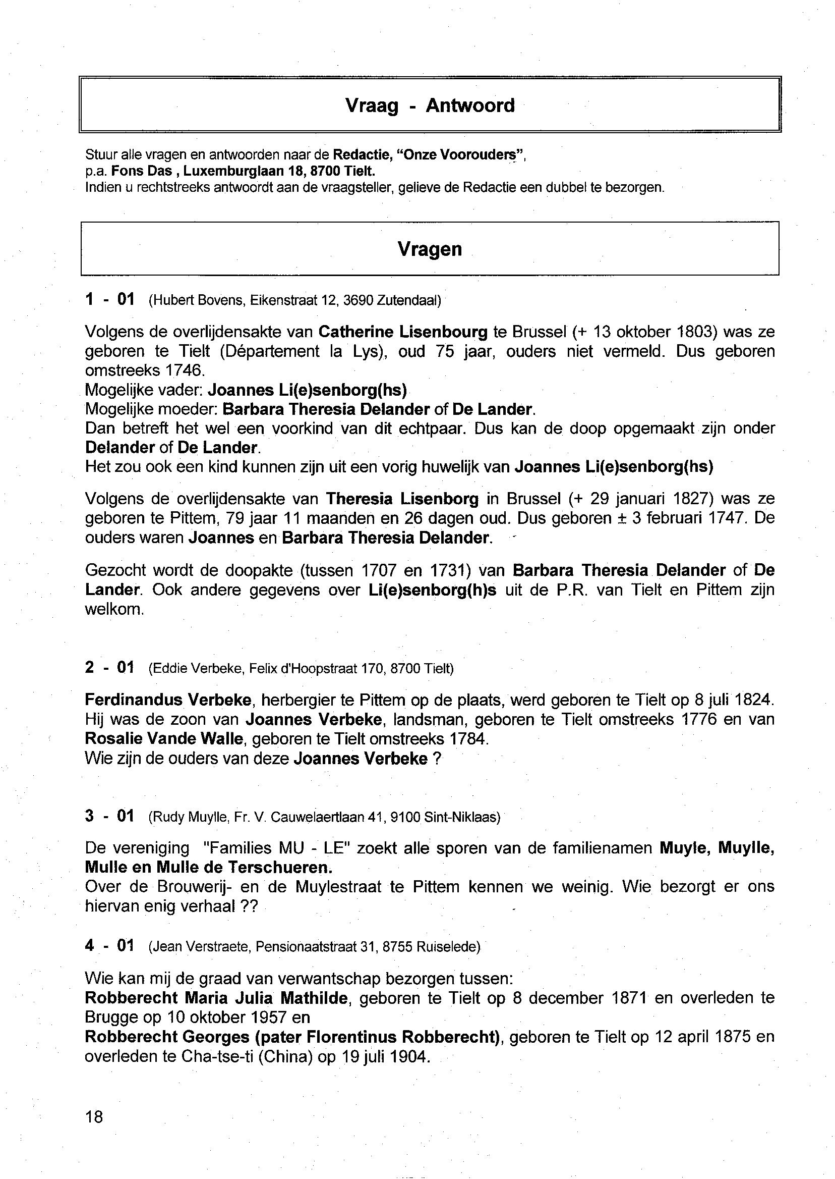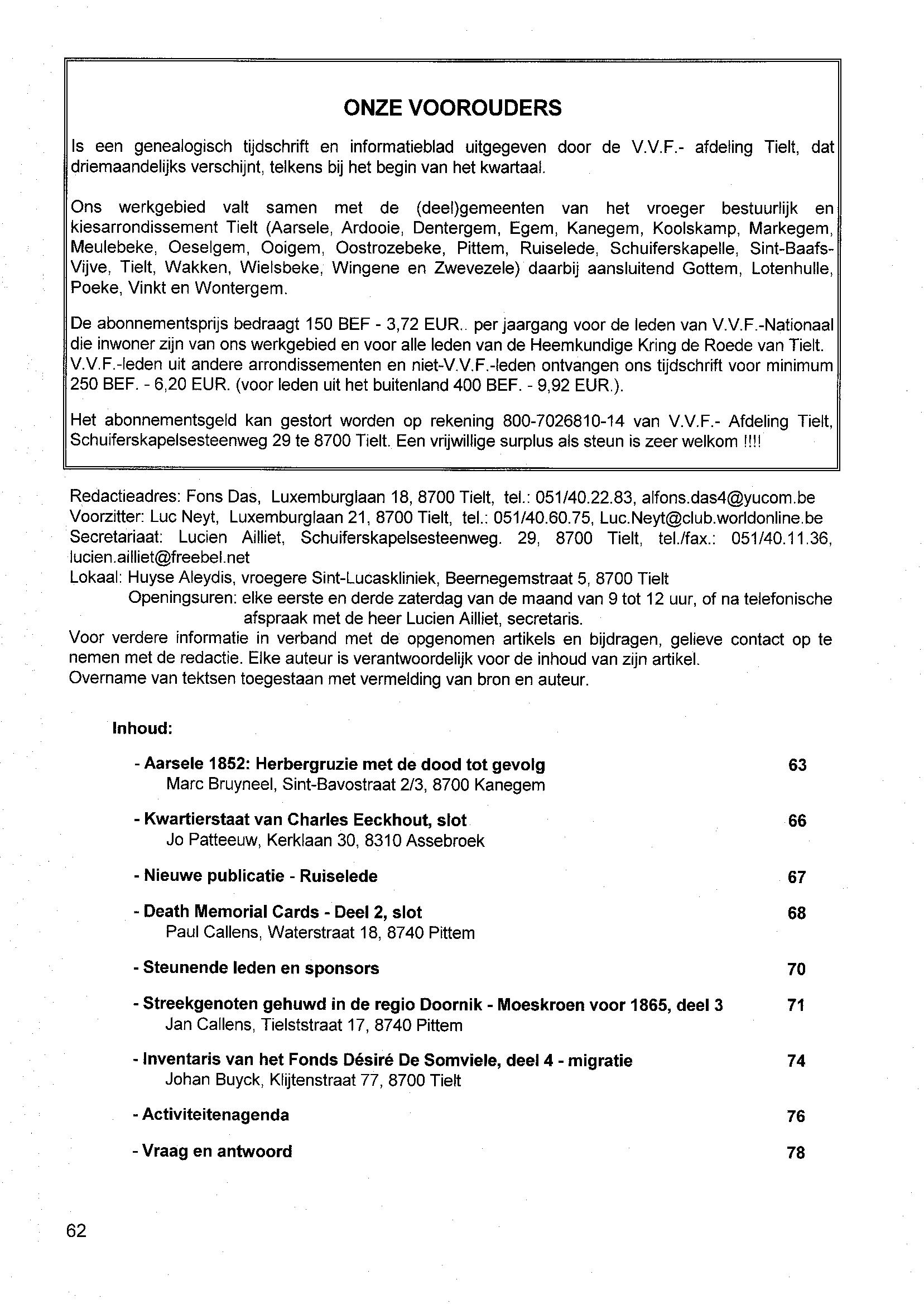 ONZE VOOROUDERS jaargang 2001 by Roede van Tielt vzw - Issuu