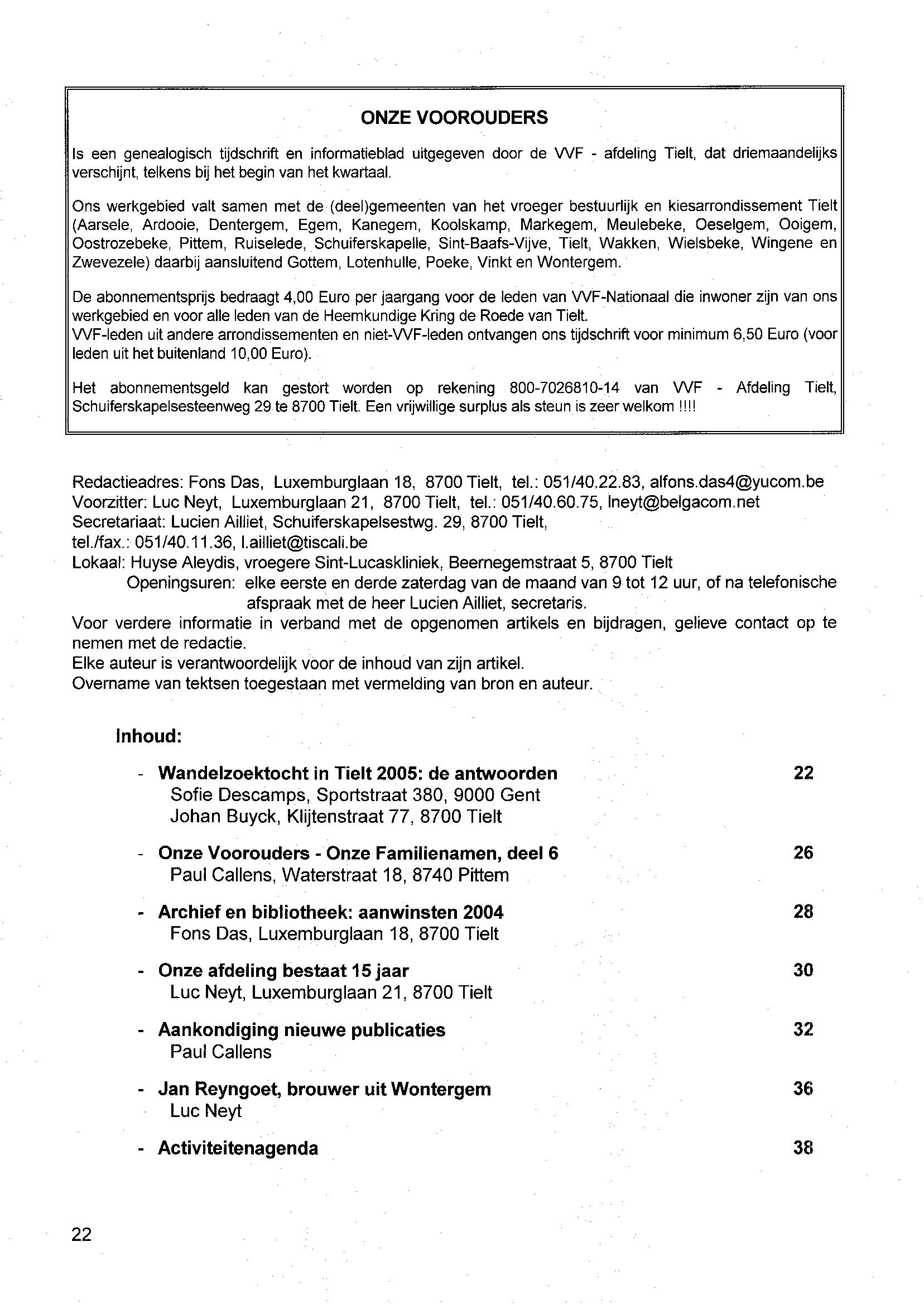 ONZE VOOROUDERS jaargang 2005 by Roede van Tielt vzw - Issuu