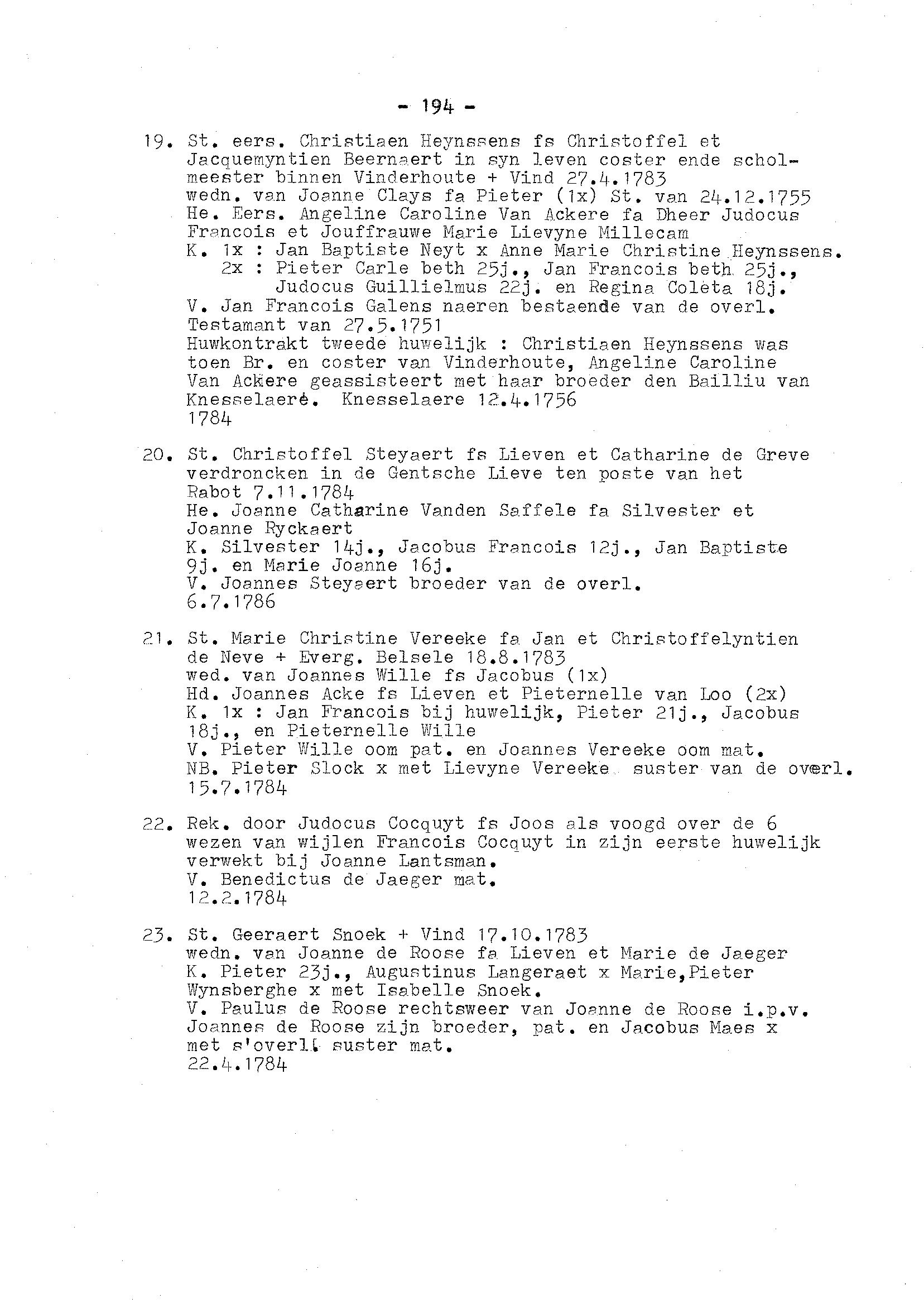 SvG uit het Meetjesland - Vinderhoute 1734-1795