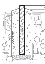 1. The hole for the taller poles should be at least 8” in diameter and deep enough for Sleeve to protrude about 1” above the ground surface. For the DP Junior, 6” diameter is sufficient. Provide gravel or stone drainage under the Sleeve, as shown on illustration.