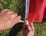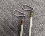 New pennants generally already have the Carabiners and Rods att ached to the brass grommets. Open one of the Carabiners and remove one of the Ring-Top Rods but leave Carabiner att ach to the pennant grommet (leave the other Rod att ached to the pennant). Next, place the Rod, that is still att ached to pennant, into the Yoke all the way down into the Yoke tube. Then, t ake the unatt ached Ring-Top Rod and place that down into the Yoke tube. Next, by slightly bending that ¼” Rod move it toward the other Carabiner and open the Carabiner to accept the Ring-Top Rod.
