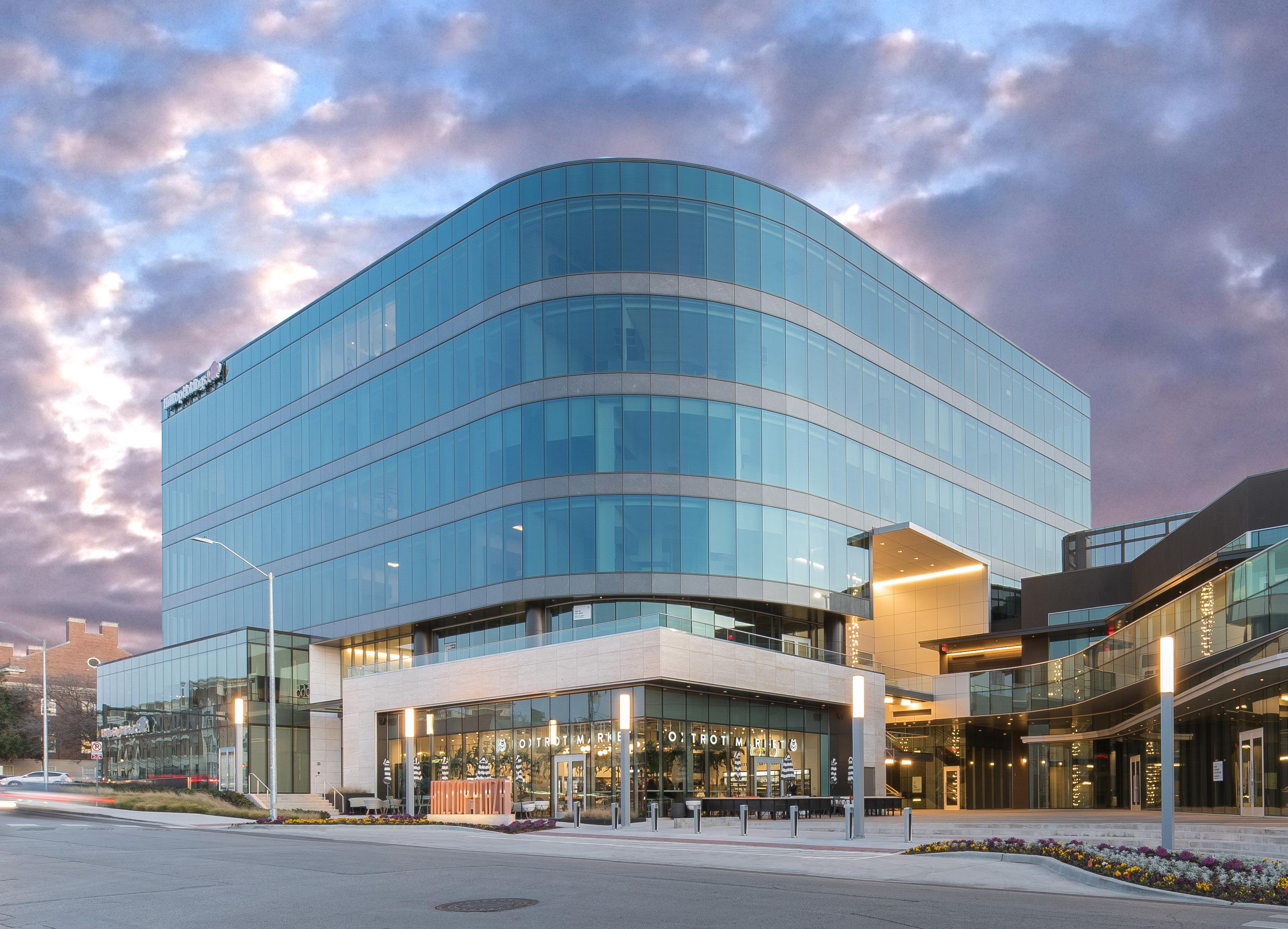 This is a flagship multi-family project at The Star for Columbus Realty, the Dallas Cowboys and Roger Staubach. Designed by O’Brien Architects, the apartment high-rise is built on two acres at Gaylord Parkway and Cowboys Way, just west of the tollway and across the street from the Ford Center. With 17 stories and 158 units, it includes a luxurious amenity area with pool and fitness center, spacious penthouse units and designs inspired from Miami. Also included for residents is a membership to The Star facilities.