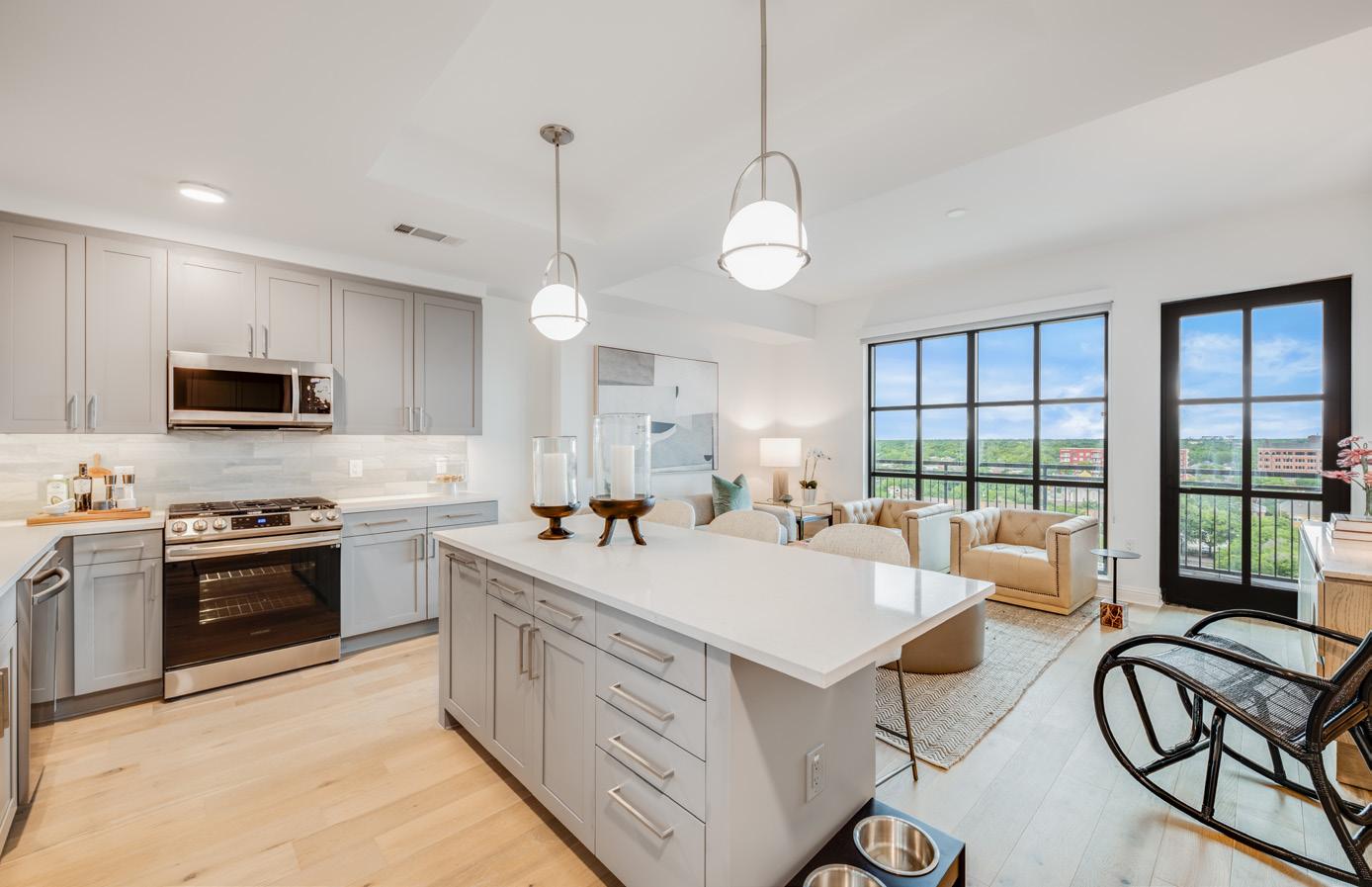 Along with the usual amenities, Novel Turtle Creek features 24-hour concierge service, on site pet facilities, a fifth-floor swimming pool with outdoor deck, tons of seating areas, outdoor kitchens, and views of Turtle Creek and the downtown skyline. Indoors include fitness center, resident lounge, and two guest suites for family and friends who visit.