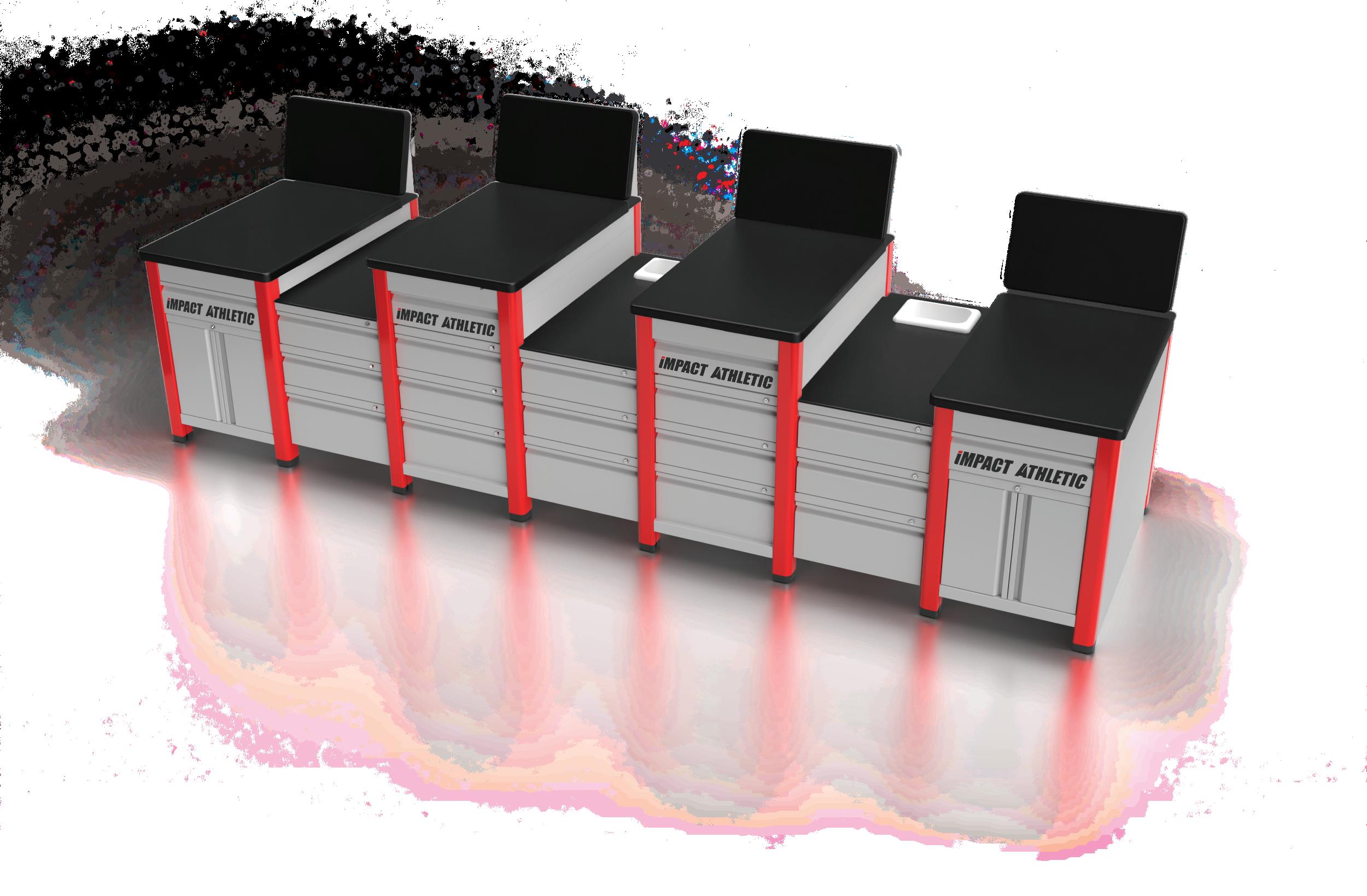 The flagship of Impact Athletic highlights the unique ability of the Medic tables to create a weather resistant treatment station in under 30 seconds. Whether you are at practice or at the game, these tables are designed to travel wherever you go with their all-terrain wheels and all-weather surfaces. Did we mention there is onboard storage? But wait! There’s more. The Medic tables are also completely customizable to highlight your organizations colors and logos.