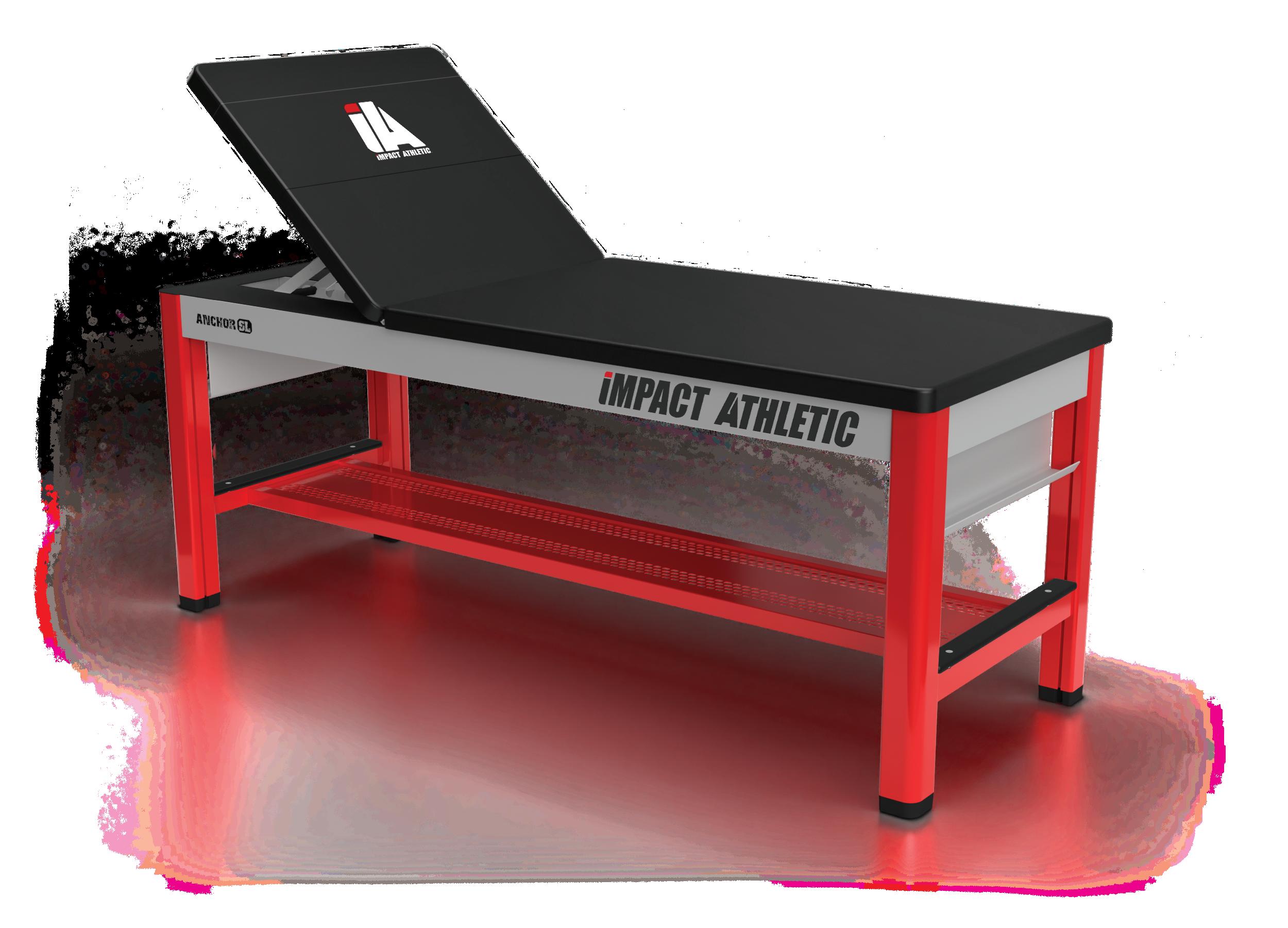 The Anchor HL is designed to provide ultimate flexibility in your athletic training room and beyond. Whether you are examining, treating, or taping, this table will adjust to your specific needs. The back rest and leg pads allow the table to convert from a treatment table to a taping station, while the height adjustment will accommodate athletic trainers of any height. There is no need for a separate modality cart as the Anchor HL has ample space for tape, towels and modality storage.
