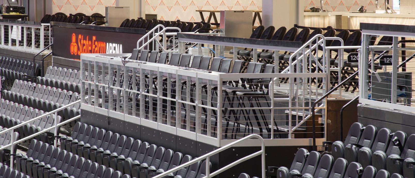 Expand your fan experience offerings with demountable party deck platforms. StageRight’s Party Deck Platform System can be constructed over your existing tiered seating to form an entirely different fan experience. Its custom designed platform system is easy to setup & strike and stores compactly.