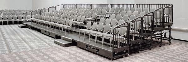 A portable large scale seating solution that offers increased seating capacity and versatility to any venue. The StageRight Extravaganza Seating System provides a safe and sturdy seating environment that is quick to set up and strike. The towers and pallets are castered to allow minimal staffing for conversion. Precision manufactured components ensure that the system will go together perfectly every time and an open deck design allows for any type of seating.