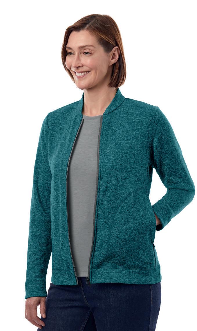 This Jacket has a very soft-to-touch brushed fleece inner to keep you warm when the evening sets in. Stylish stitch detailing around the pocket create a flattering shaped jacket.