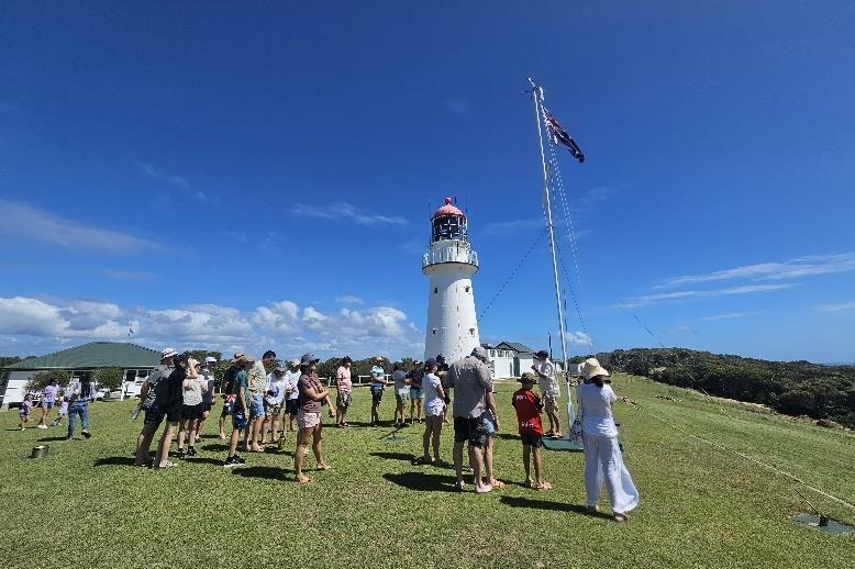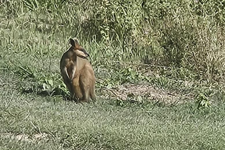 In preparation for today’s LARC tour, our first job was to conduct a site check. Jill spotted a small wallaby grazing on the lighthouse lawn. It looked like a pretty face but was “browner” than the ones we see at Gladstone.