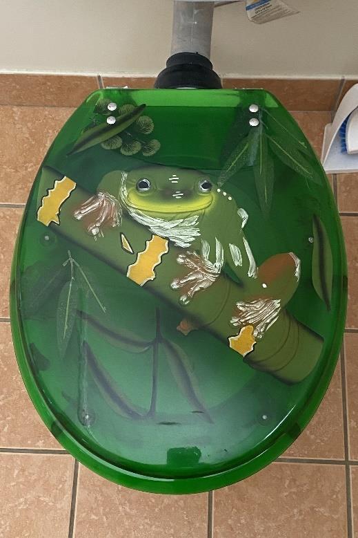 I’m not convinced that the maker of the toilet lid understood just how annoying it can be in Queensland having green tree frogs in the toilet. Here they retreat and take up residence under the rim around the toilet bowl. Not only can it scare a sitting toilet user when the frog leaves the rim but a