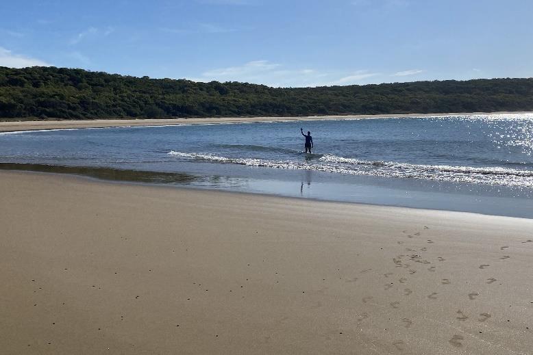 The water was rough and so we decided to venture south past the end of the main beach in search of a more protected place to have a dip. It was not long before we found a “quieter inlet”, so we took the opportunity to cool down.