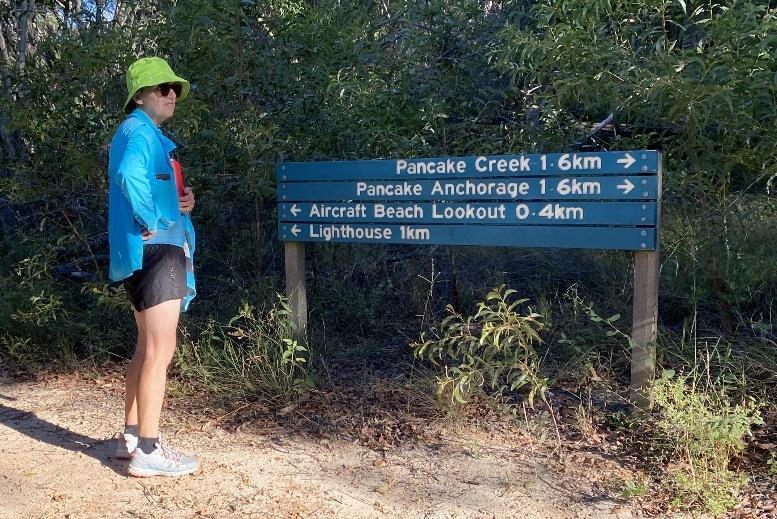 At about 8am we set out for Pancake Creek. Just north of the turnoff to Aircraft beach is a signpost to Pancake Creek Anchorage and another to Pancake Creek. Both promised a 1.6km walk but were at 90 degrees to each other. We decided to take the Pancake Creek track heading directly north as it looked the better maintained track.