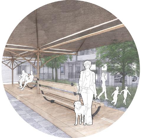 Modulated plinths Existing warehouse Cycling lanes Eateries