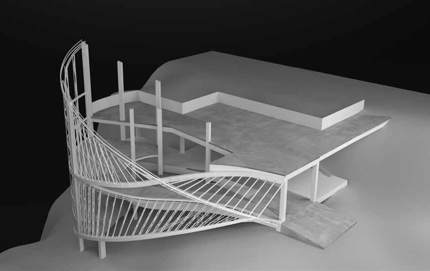 The central axis ties together the central courtyard within the exposition area and the pedestrianized edge. The central courtyard is carved out of two bays to house a dense garden to further stimulate enriching dialogue.