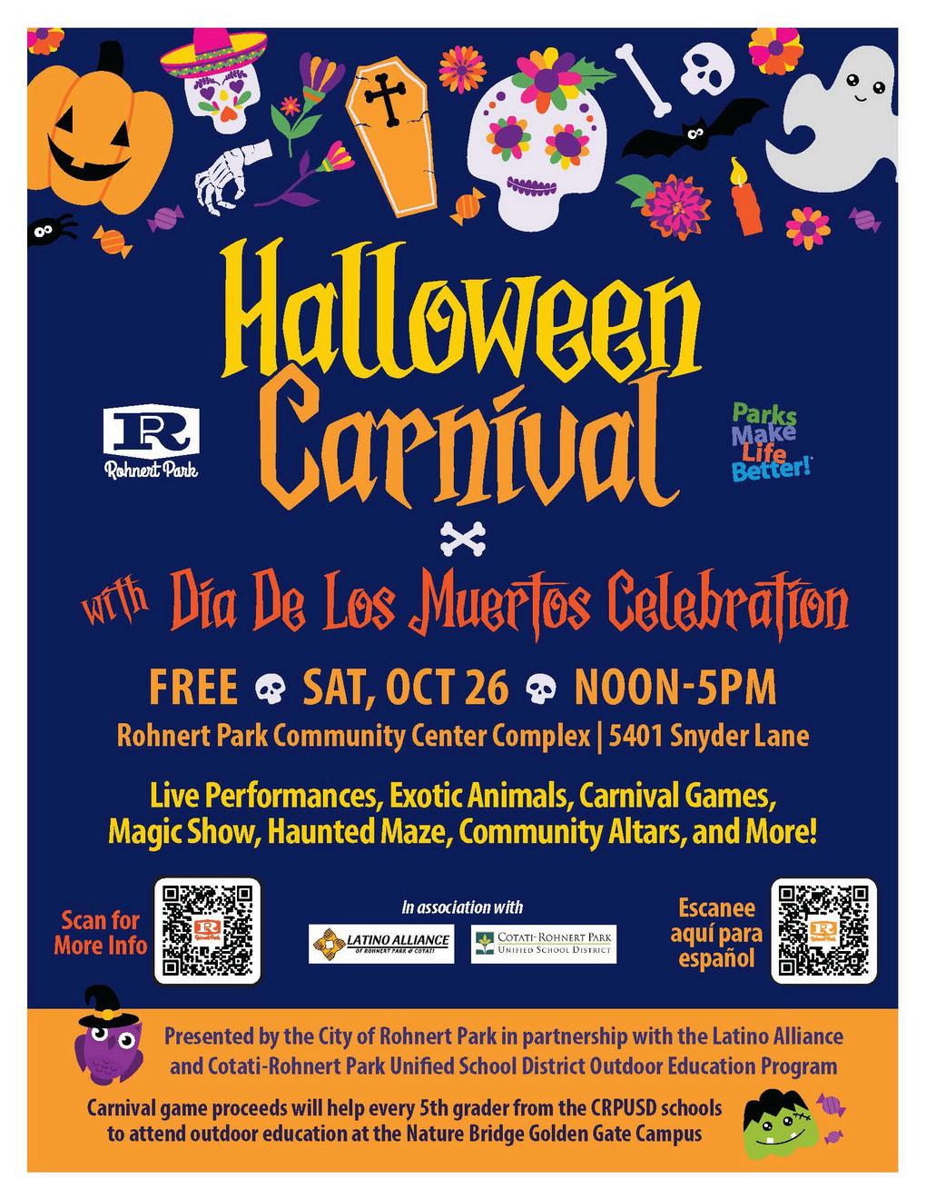 The City of Rohnert Park is excited to invite you to contribute to our Community Altar, part of our annual Halloween Carnival and Dia de los Muertos Celebration!