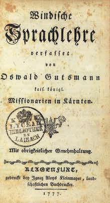 Ožbalt Gutsman: Slovenska slovnica, 1777