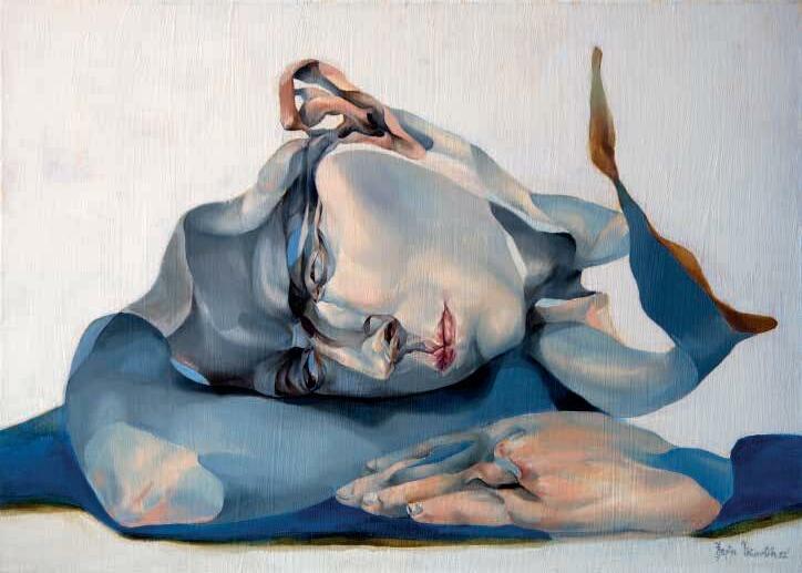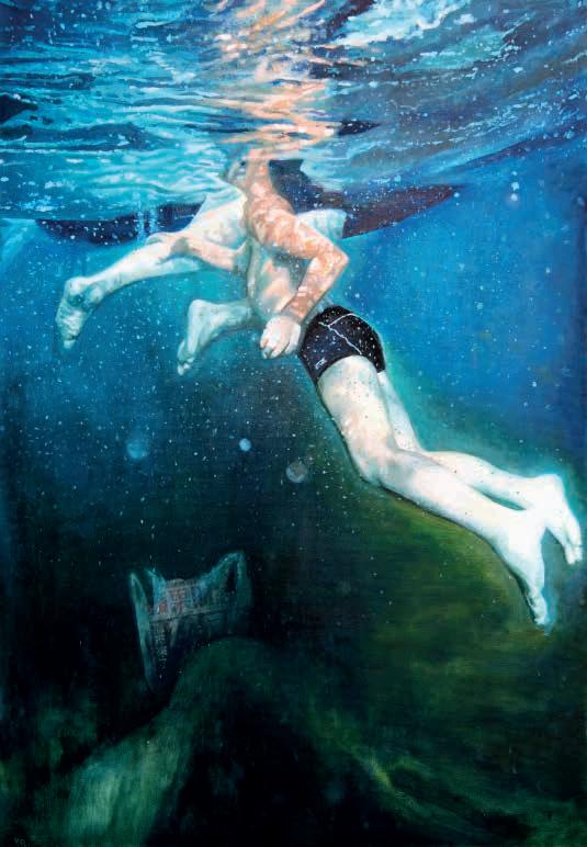 Rad, ostvaren uljem na platnu, predstavlja uronjenost u tečnost, bez znakova panike akterke. Ovu scenu možemo doživjeti kao alegoriju, propitivanje bijega čovjeka iz diktirano racionalnog svijet današnjeg nehumanog društva, po cijenu nemogućnosti disanja. Umjetnica ne vjeruje u reklamokratiju, medijske proklamacije, ali kao da čita prikrivene znakove pojavnosti fašizacije tzv. demokratskih društvenih uređenja. Nudi sasvim ličan protest. Ovo budi našu potisnutu podsvijest. Senzibilni posmatrač mora osjetiti ponuđenu umjetnicinu ideju propitivanja osobnosti. Jer do pred malo je lično ja bilo odrednica identiteta, oslonac svrhovitosti života. Novo, ovovremeno ja napadnuto je na svim područjima. Ograničava se konstruisanom, pohlepnom ekonomijom, pravilima, nametnutim konvencijama.
