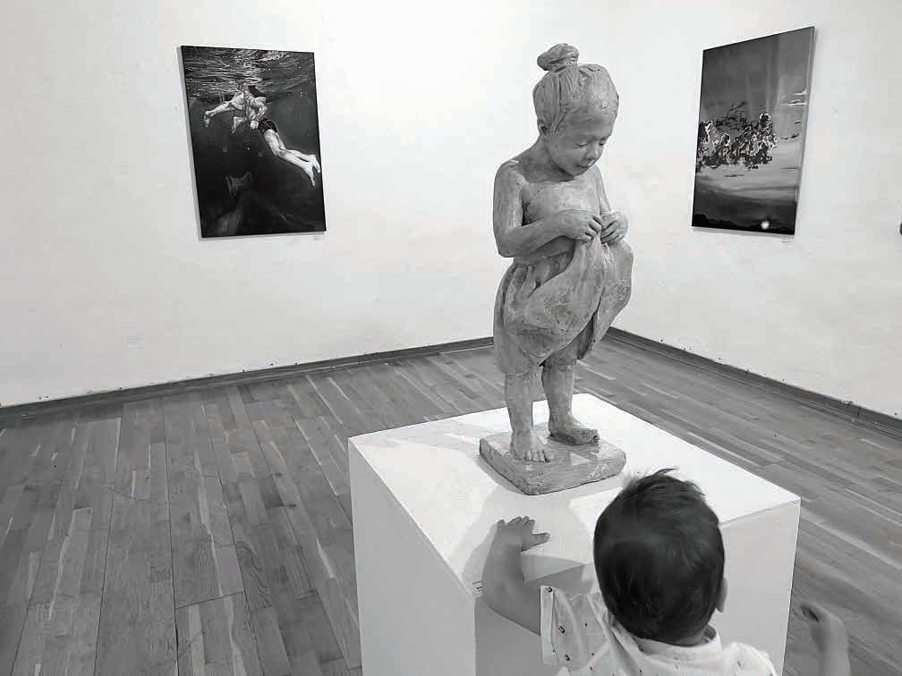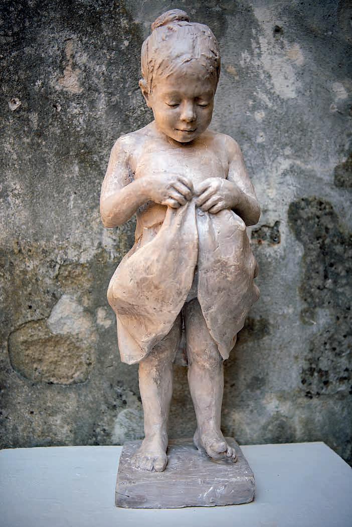 Jovana Tucović uspijeva realizovatii šarmantnu skulpturu, kip djevojčice s haljinom, suknjom. I ovaj rad realizovan je u glini te je za potrebe prve izložbe izliven u gipsu. Umjetnica kao da nastavlja seriju dječjih karakternih portreta koju je lani krunisala izuzetnim portretom dječaka.