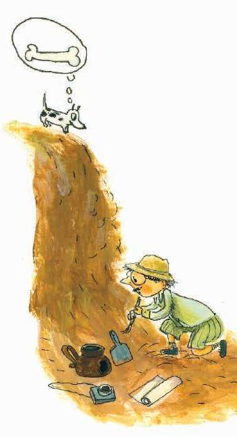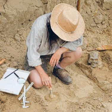 Arheolog vodi izkopavanje predmetov iz davne preteklosti, npr. ruševin zgradb, ostankov posode, nakita, orodja, orožja itd.