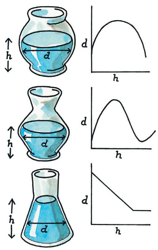 V steklene posode različnih valjastih oblik točimo vodo. Premer kroga vodne gladine je odvisen od višine, do katere smo natočili vodo.