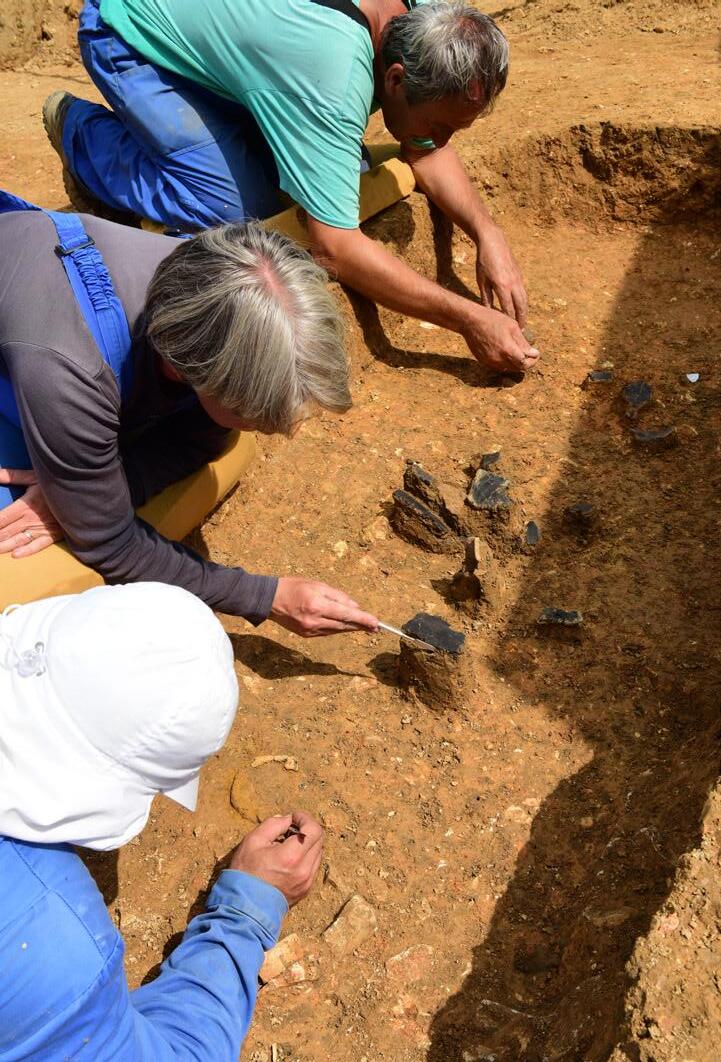 Arheologi na arheoloških najdiščih izkopavajo materialne ostanke.