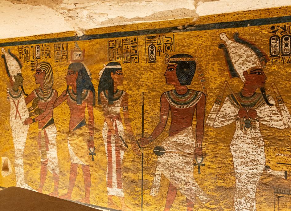 V egipčanskih grobnicah so ohranjene mnoge poslikave. Slikarji so bili v svojem ustvarjanju zelo izvirni. Upodobili so naravo, poljska in vsakodnevna opravila, pogrebne obrede za pokojnega in posmrtno življenje. Osebe so upodabljali iz dveh smeri: boki in glava so naslikani od strani, oko in ramena pa od spredaj. Velika vrednost upodobitev je, da si z njihovo pomočjo lažje predstavljamo življenje v času prvih civilizacij.